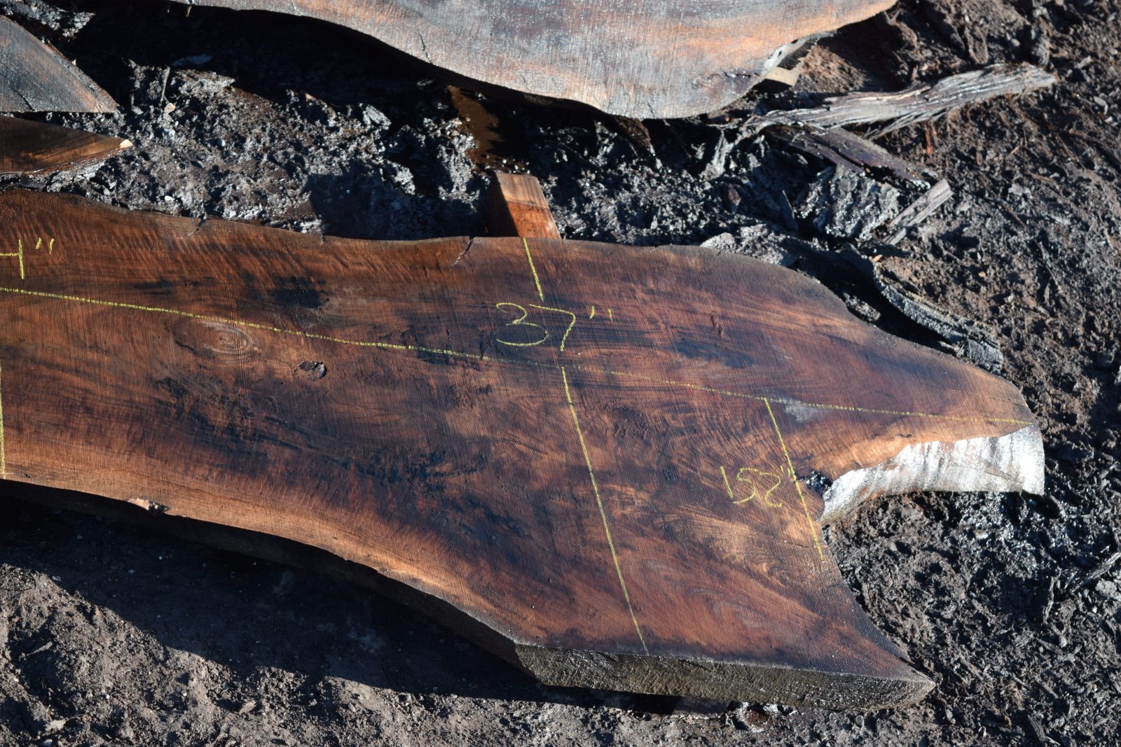 This is a nice long live edge Claro Black Walnut slab that has good color, figure and character adding checks. Milled and air drying since July 2017.