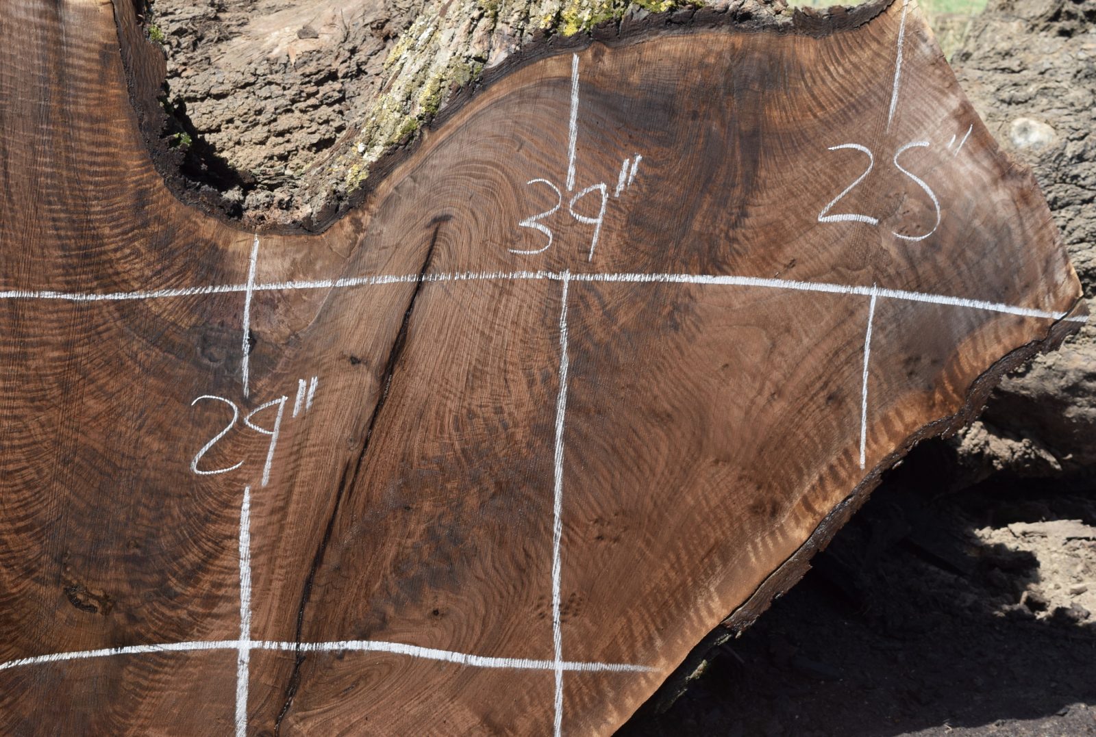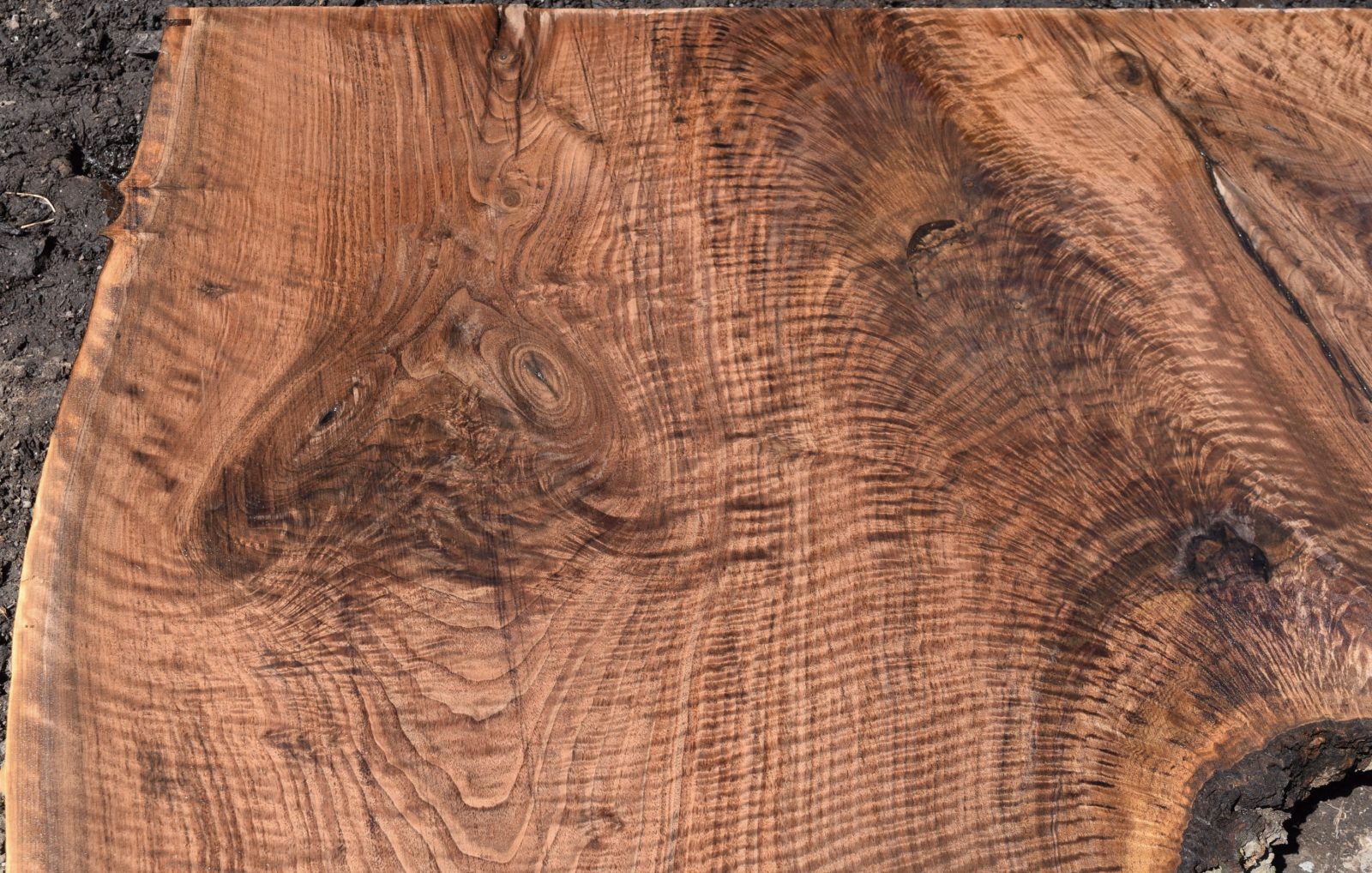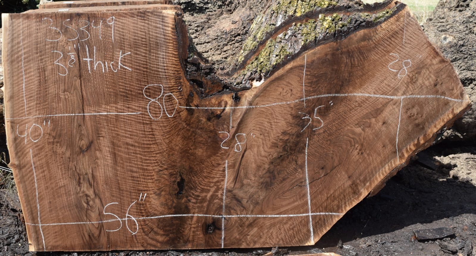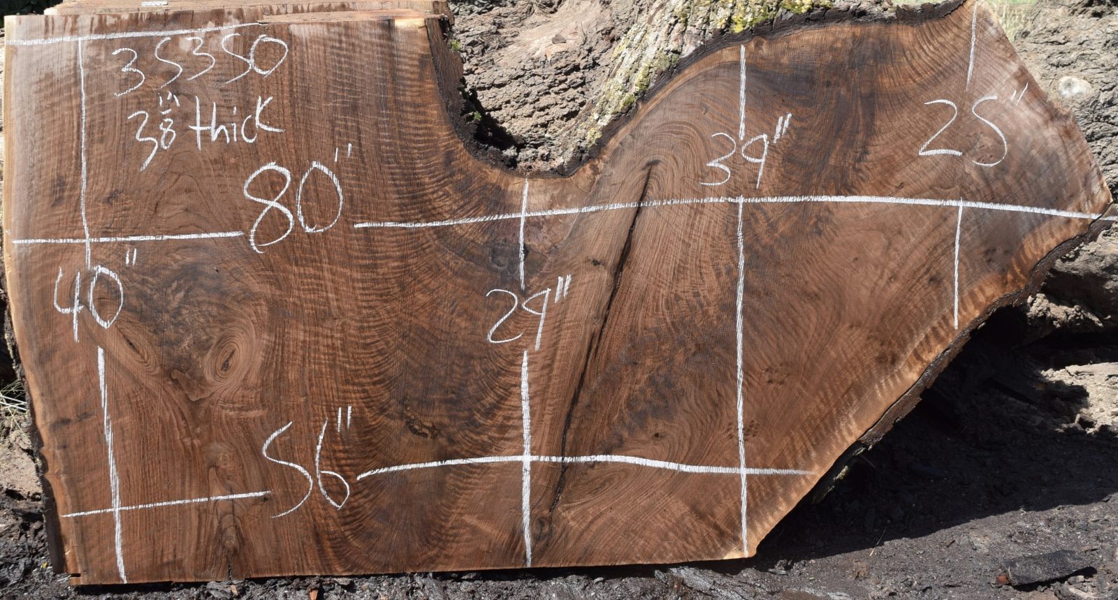This is a beautiful Claro Walnut crotch slab that has amazing color, grain and figure along with some small cracks. Milled and air drying since August 2019.