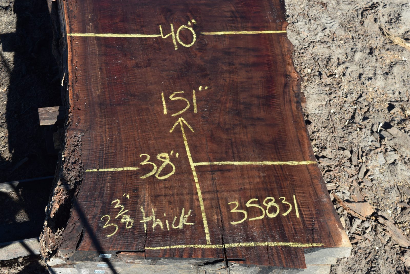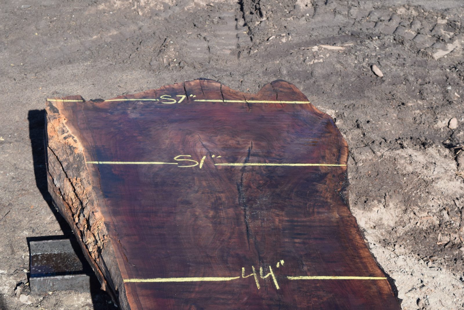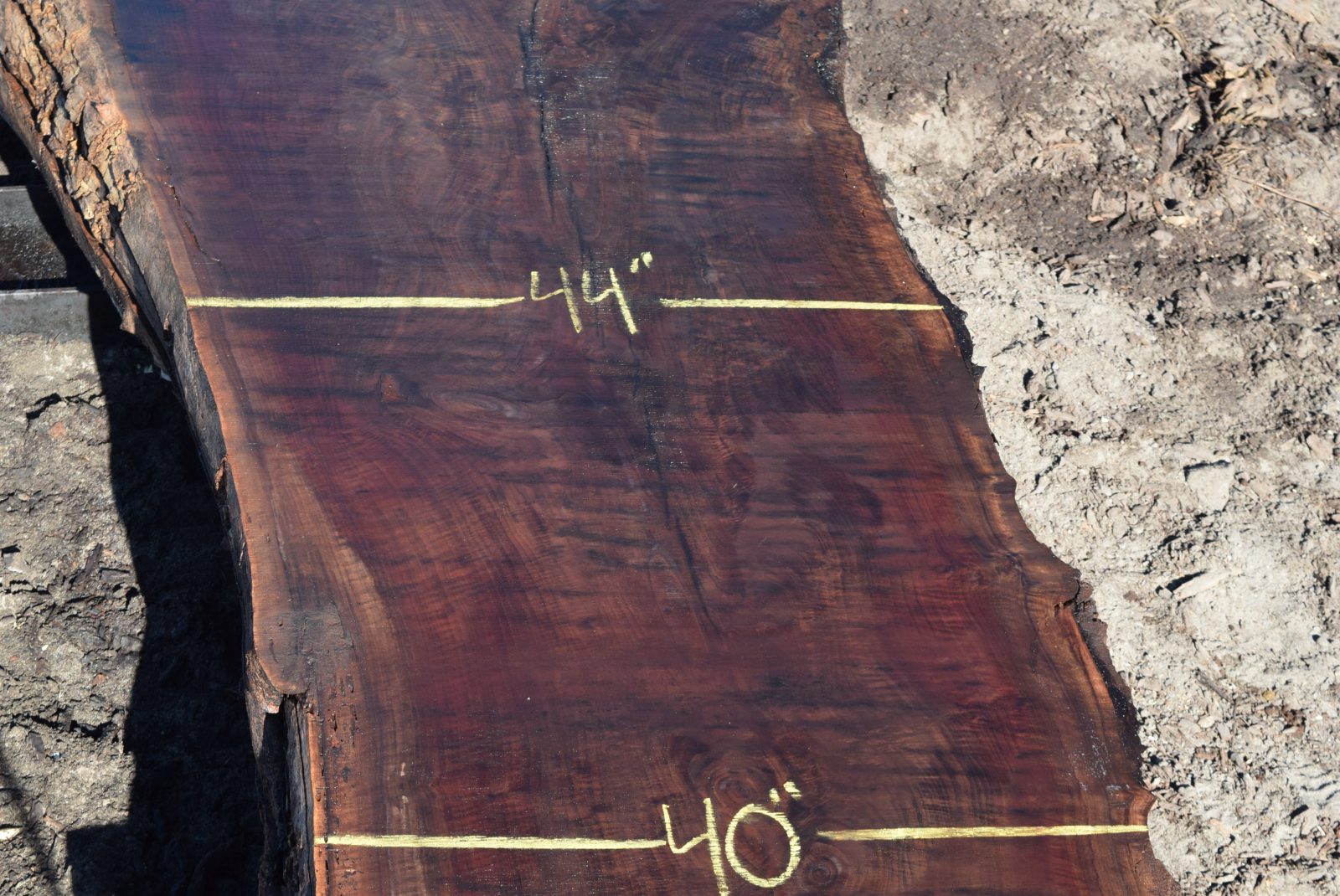 Milled and air drying since July 2022. Nice color, grain and figure along with some cracks. The slab would need roughly 8 weeks in the kiln to finish drying.