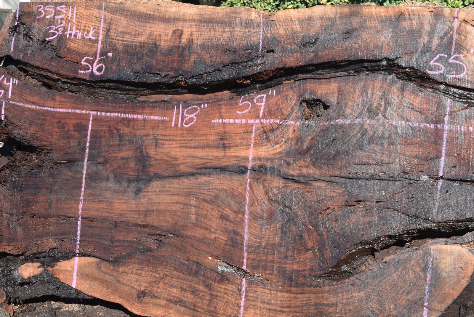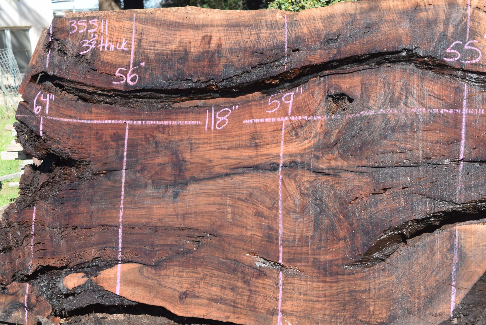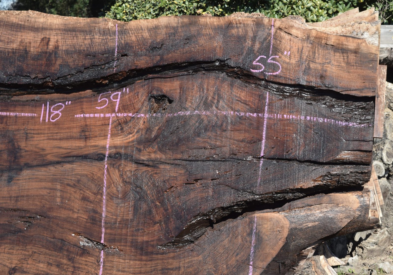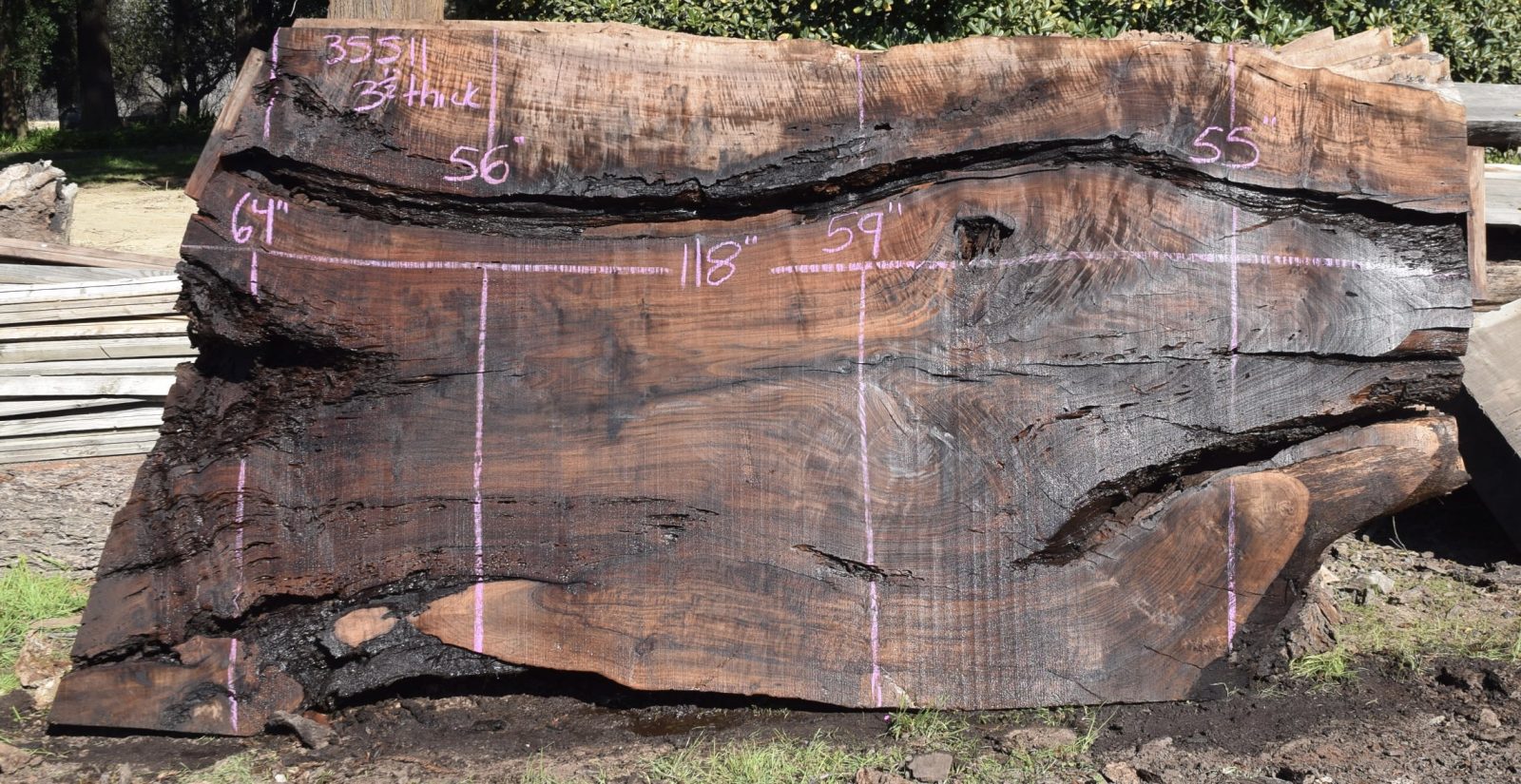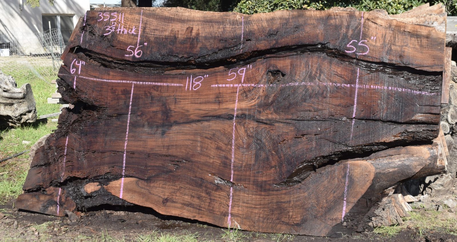 This is a really nice large Claro Walnut slab that has a good amount of defects and would make a beautiful epoxy table. Milled and air drying since February 2022. Salvaged from the Payne ranch in Madison, Ca.
