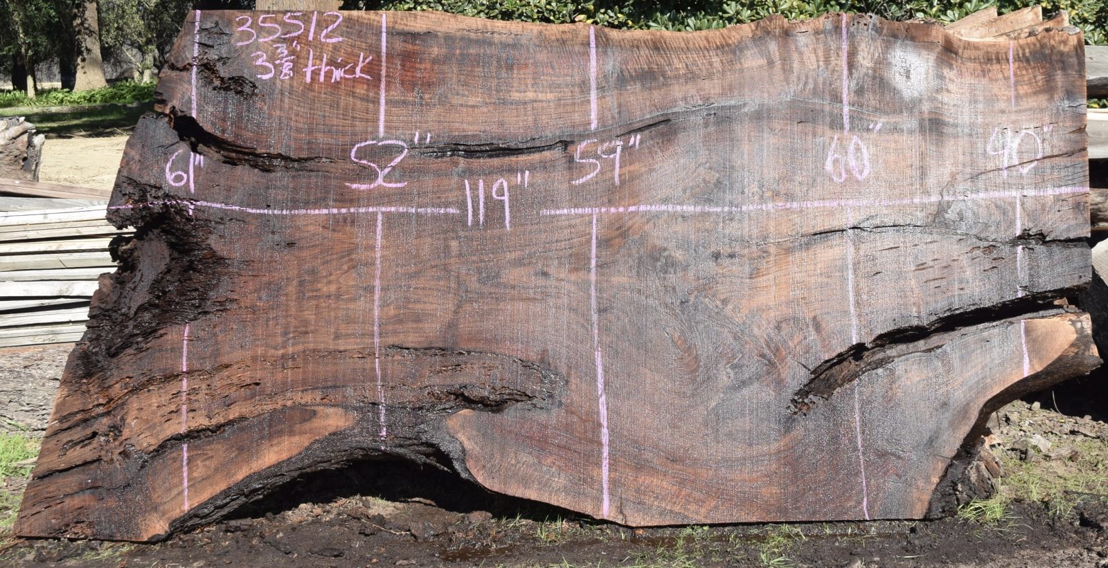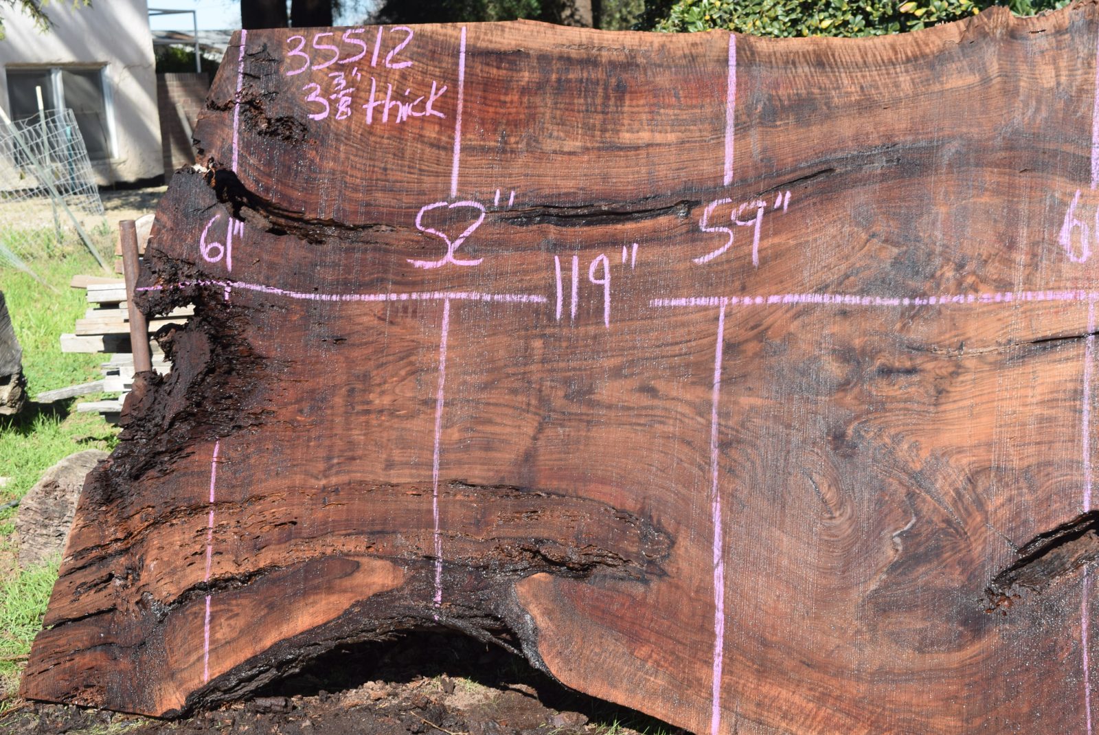 Milled and air drying since February 2022. Salvaged from the Payne ranch in Madison, Ca.