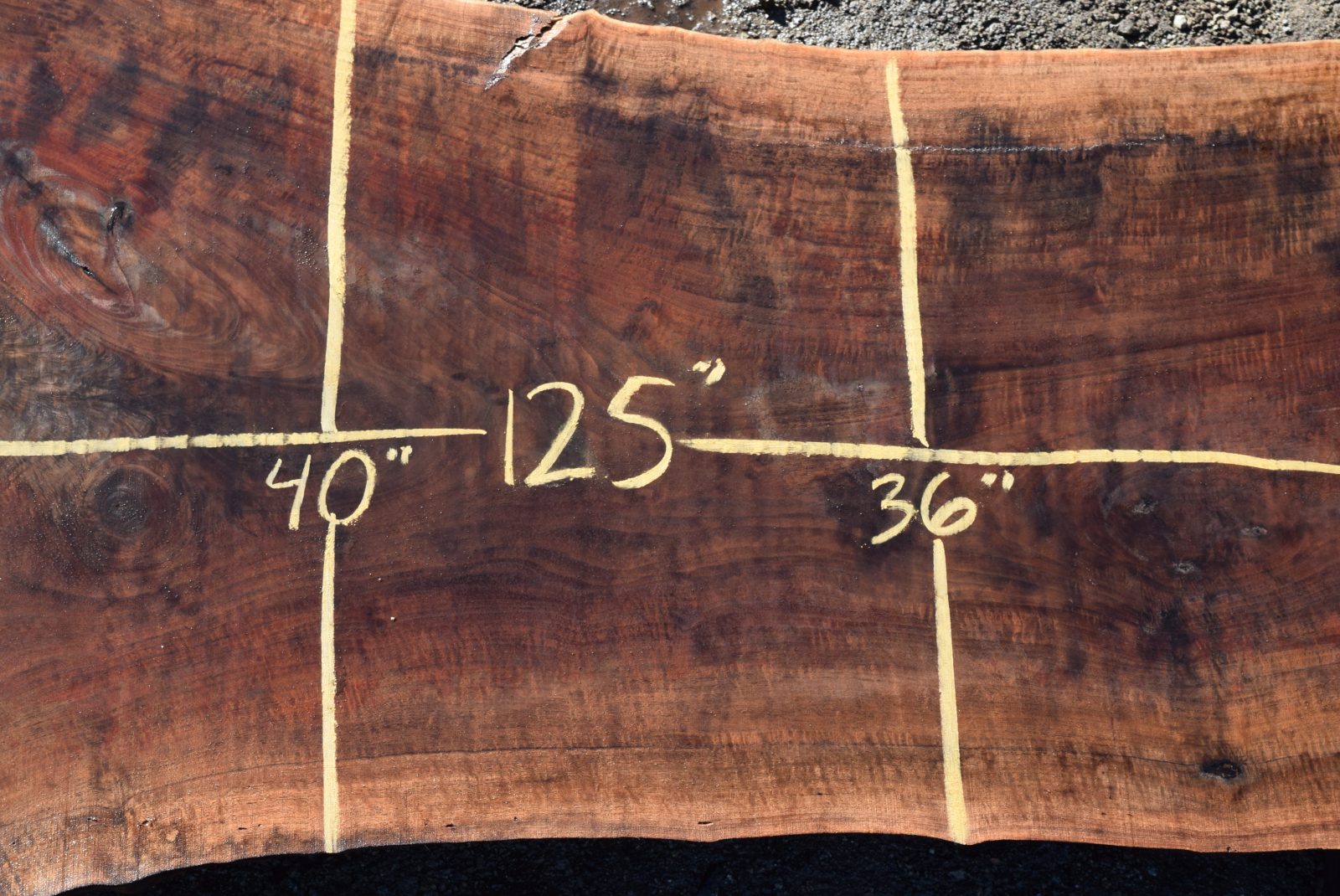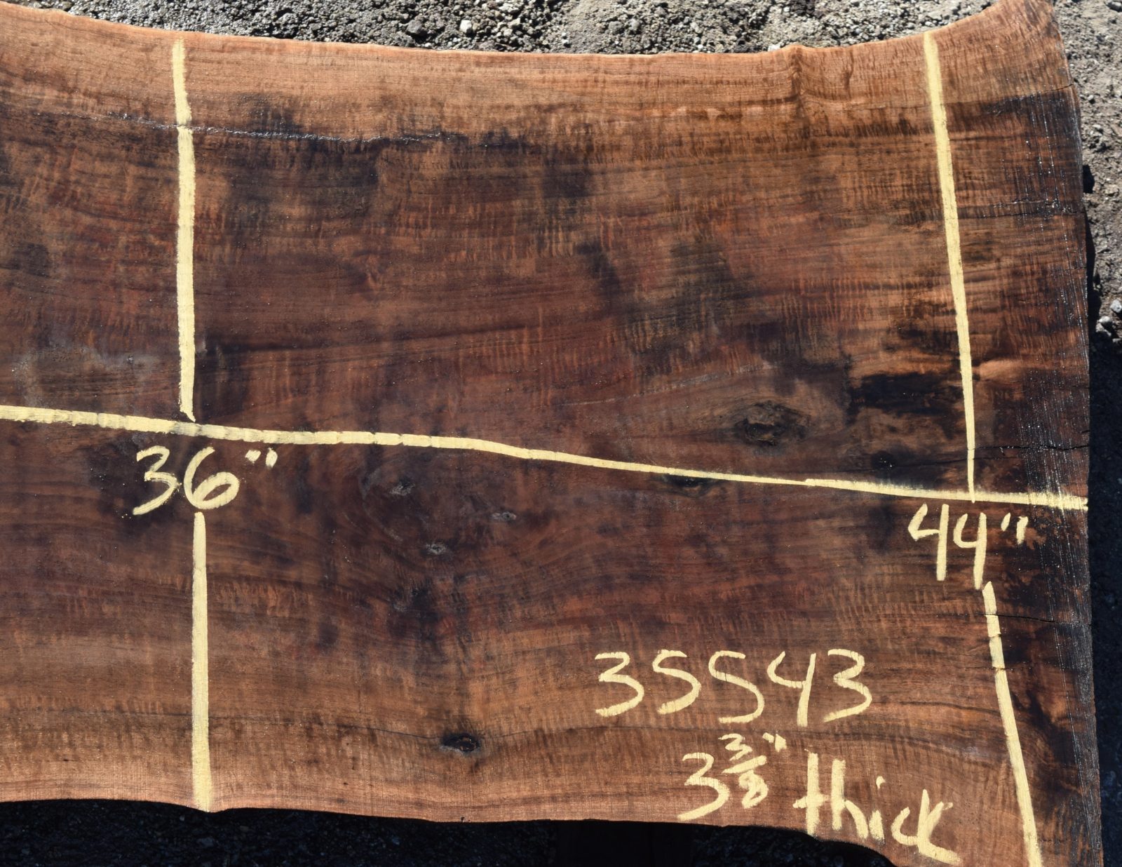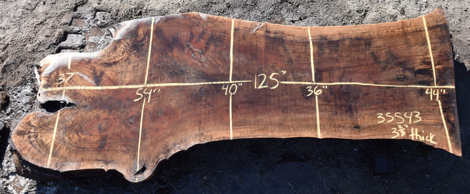 35543 Figured Claro Walnut Slab 125”x54”-36”x 3 3/8” Feb 2022 quantity