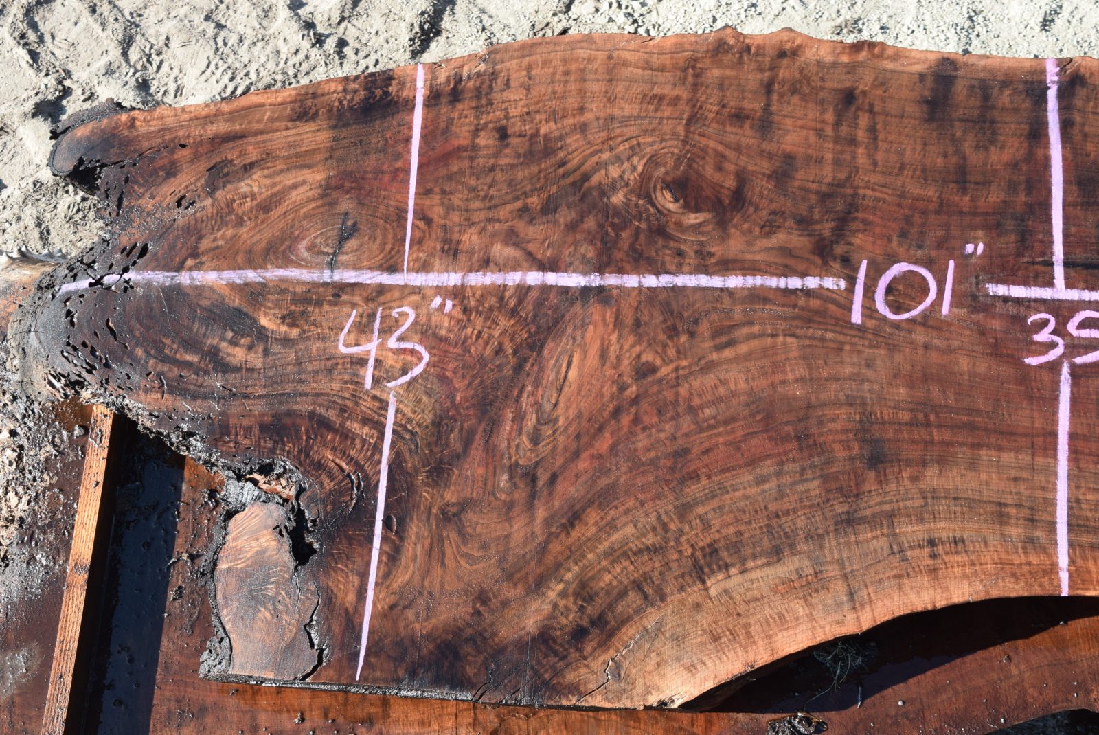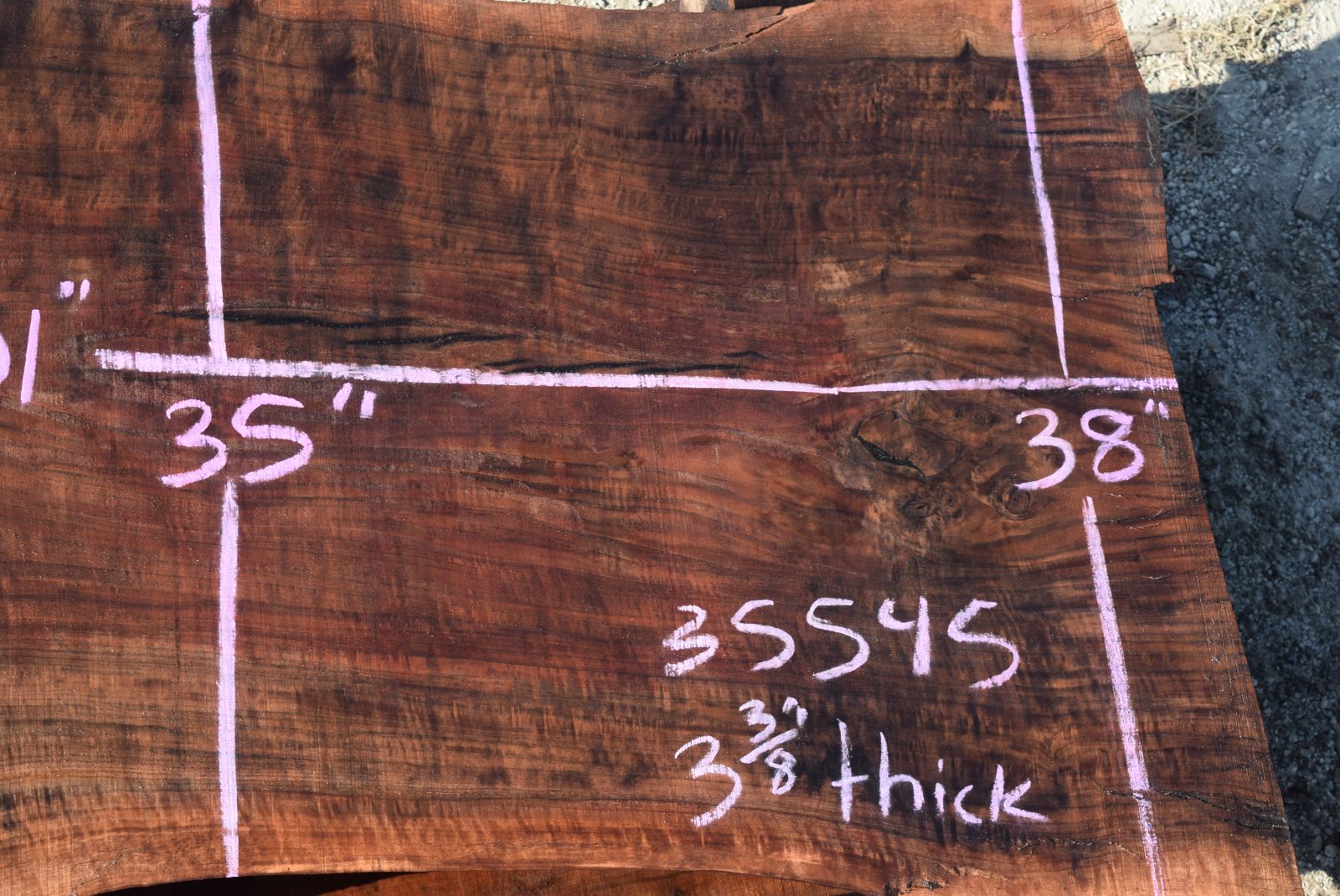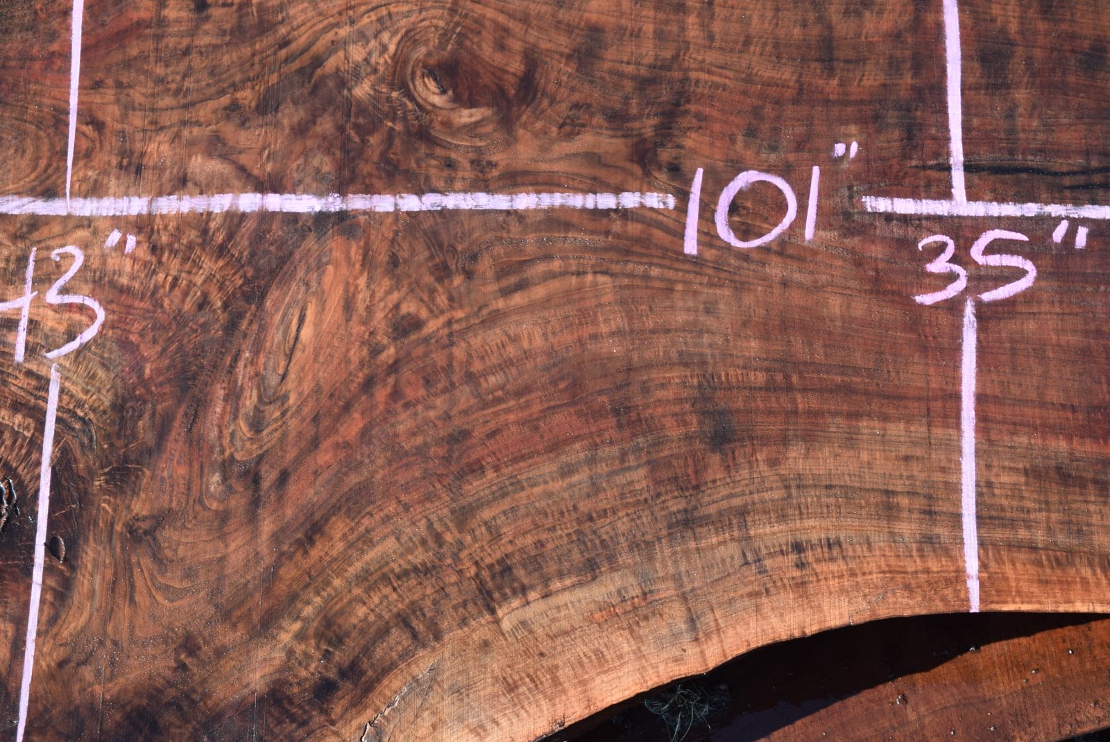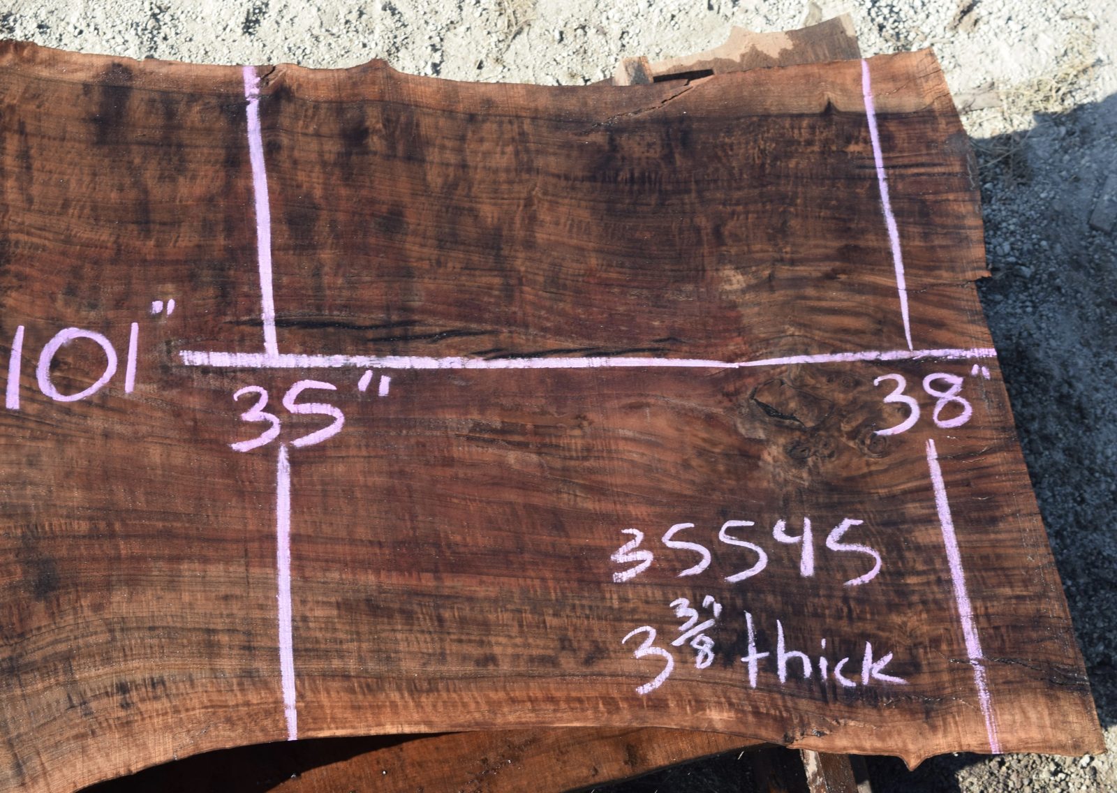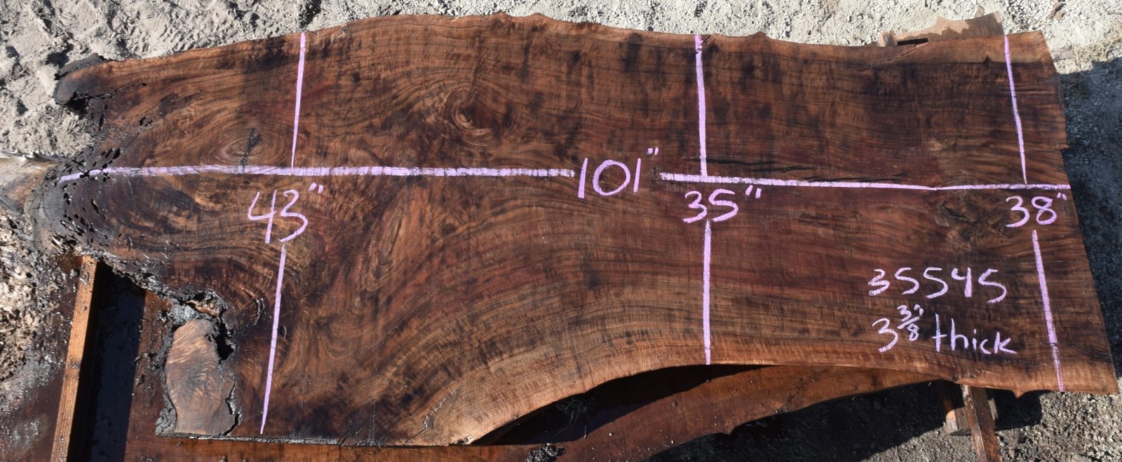35545 Figured Claro Walnut Slab 101”x43”-35”x3 3/8” Feb 2022