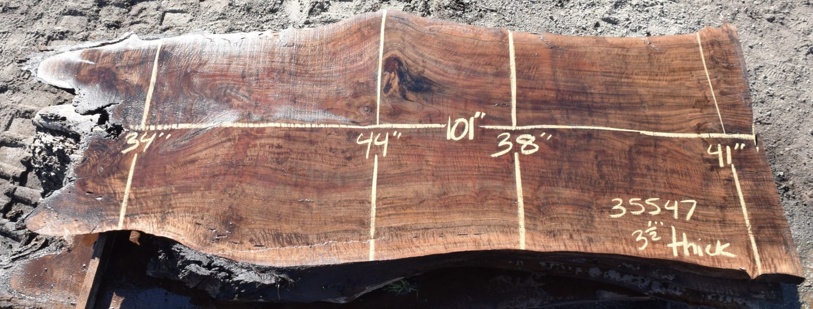 35547 Figured Claro Walnut Slab 101”x44”-34”x3 1/2” Feb 2022 quantity