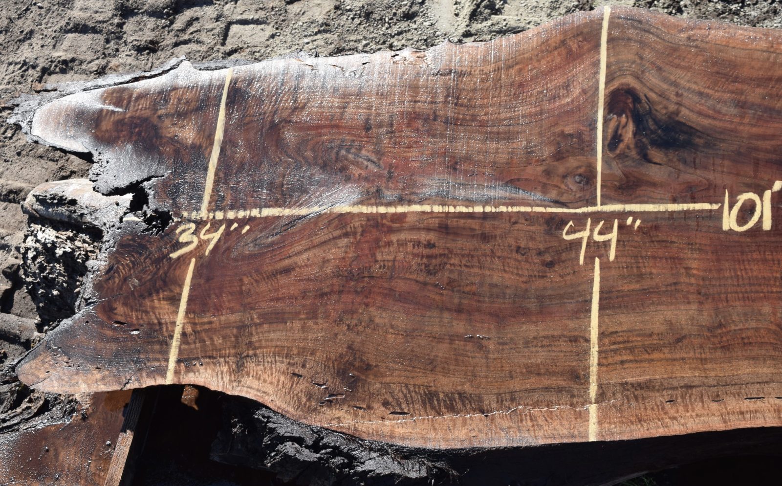 35547 Figured Claro Walnut Slab 101”x44”-34”x3 1/2” Feb 2022