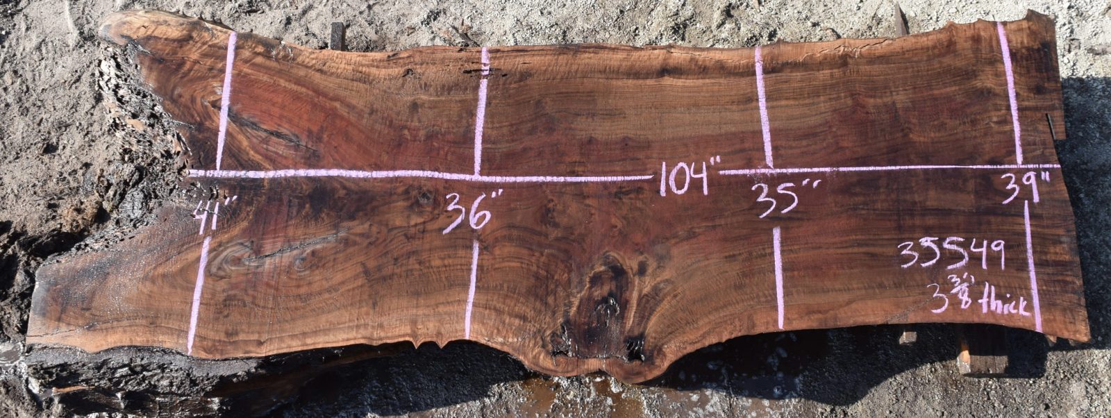 35549 Figured Claro Walnut Slab 104“X41”-35”x3 3/8” Feb 2022 quantity
