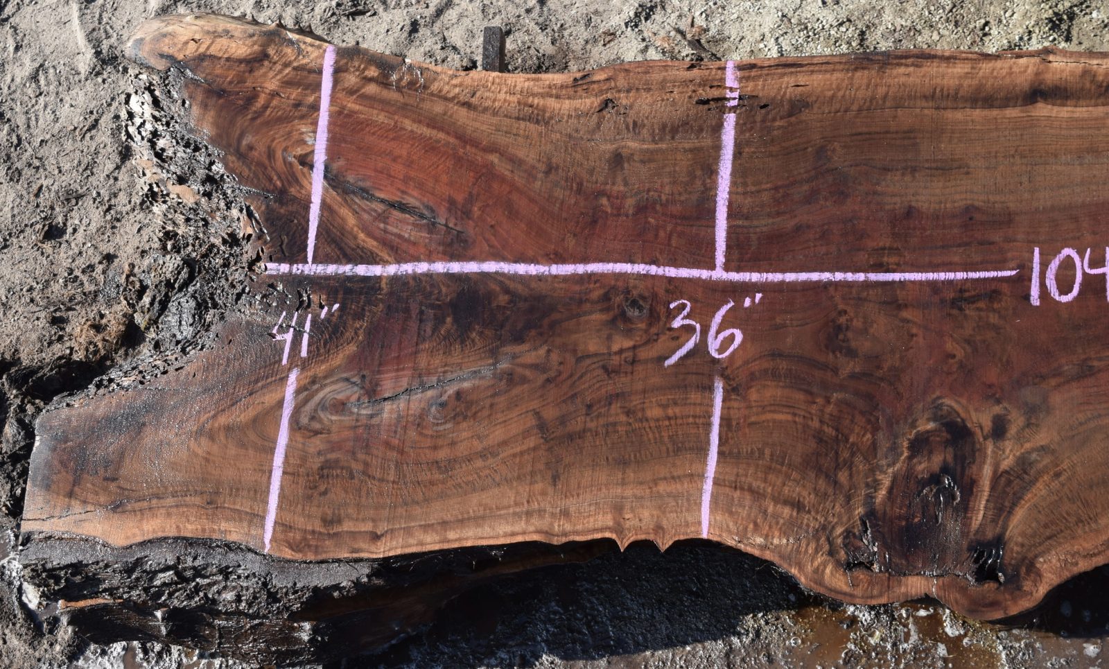35549 Figured Claro Walnut Slab 104“X41”-35”x3 3/8” Feb 2022