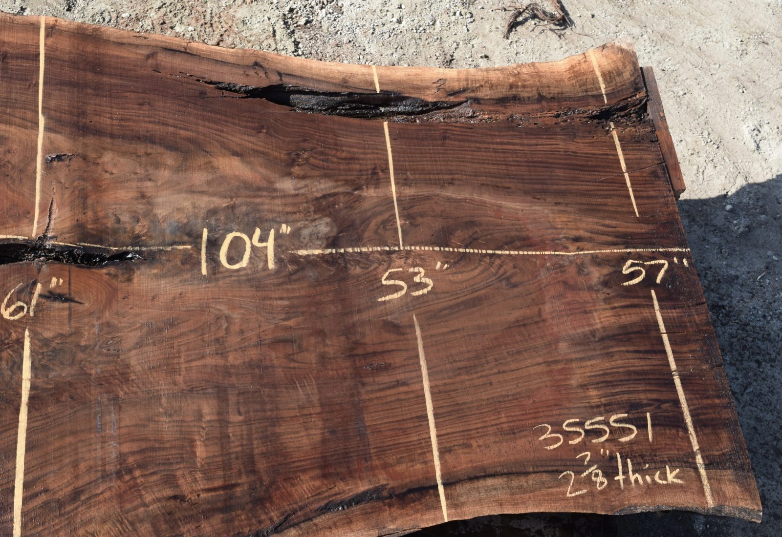 35551 Large Claro Walnut Slab 104"x61"-53"x2 7/8" Feb 2022 quantity