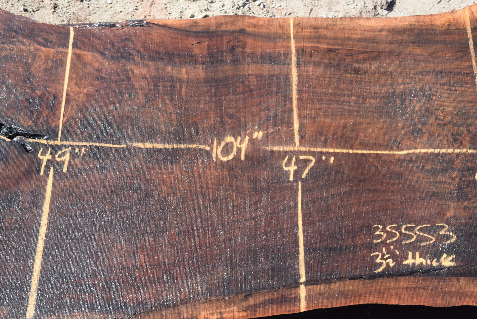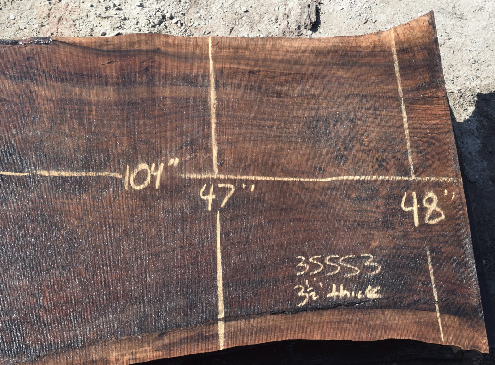 35553 Large Claro Walnut Slab 104”x54”-47”x3 1/2” Feb 2022