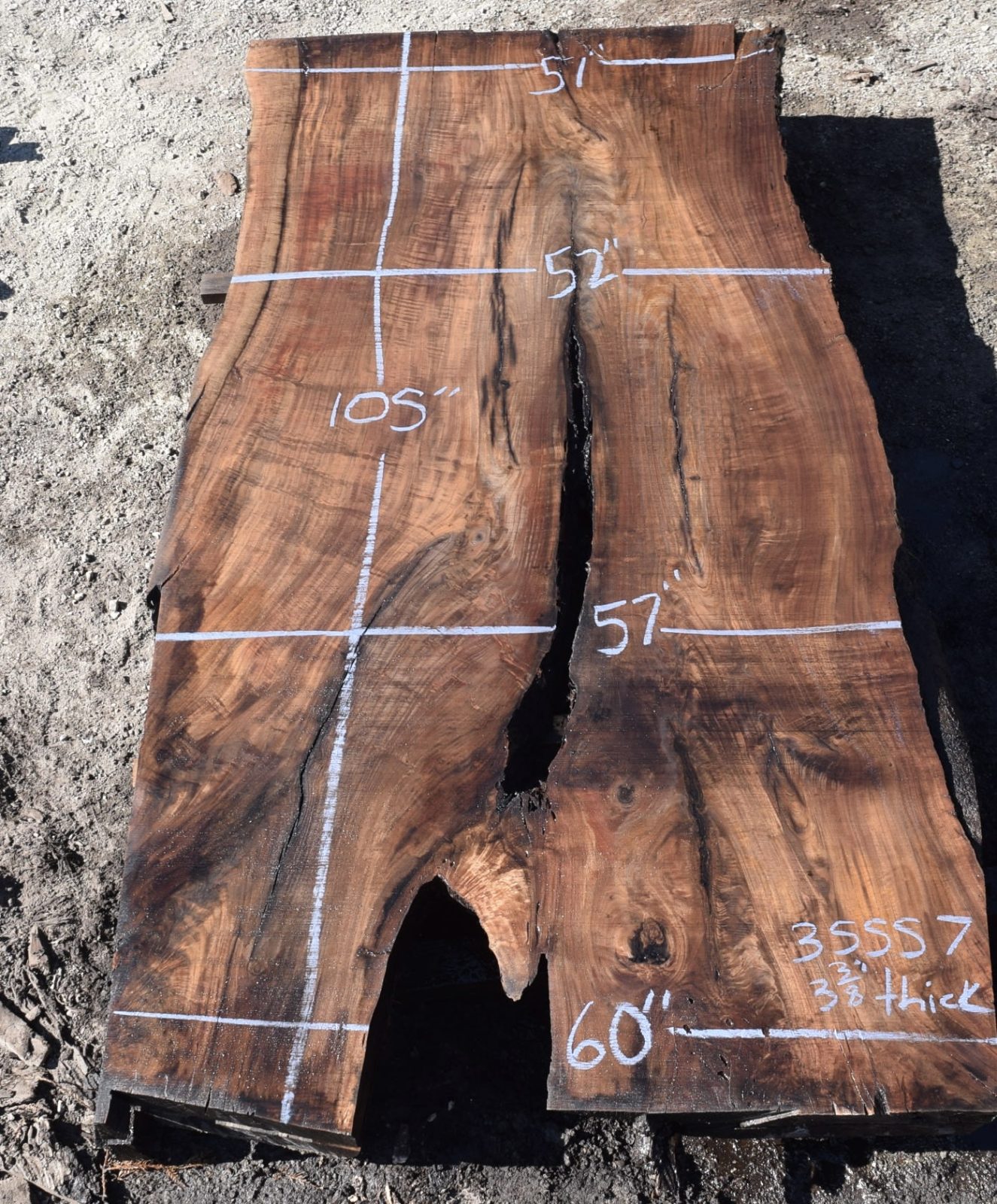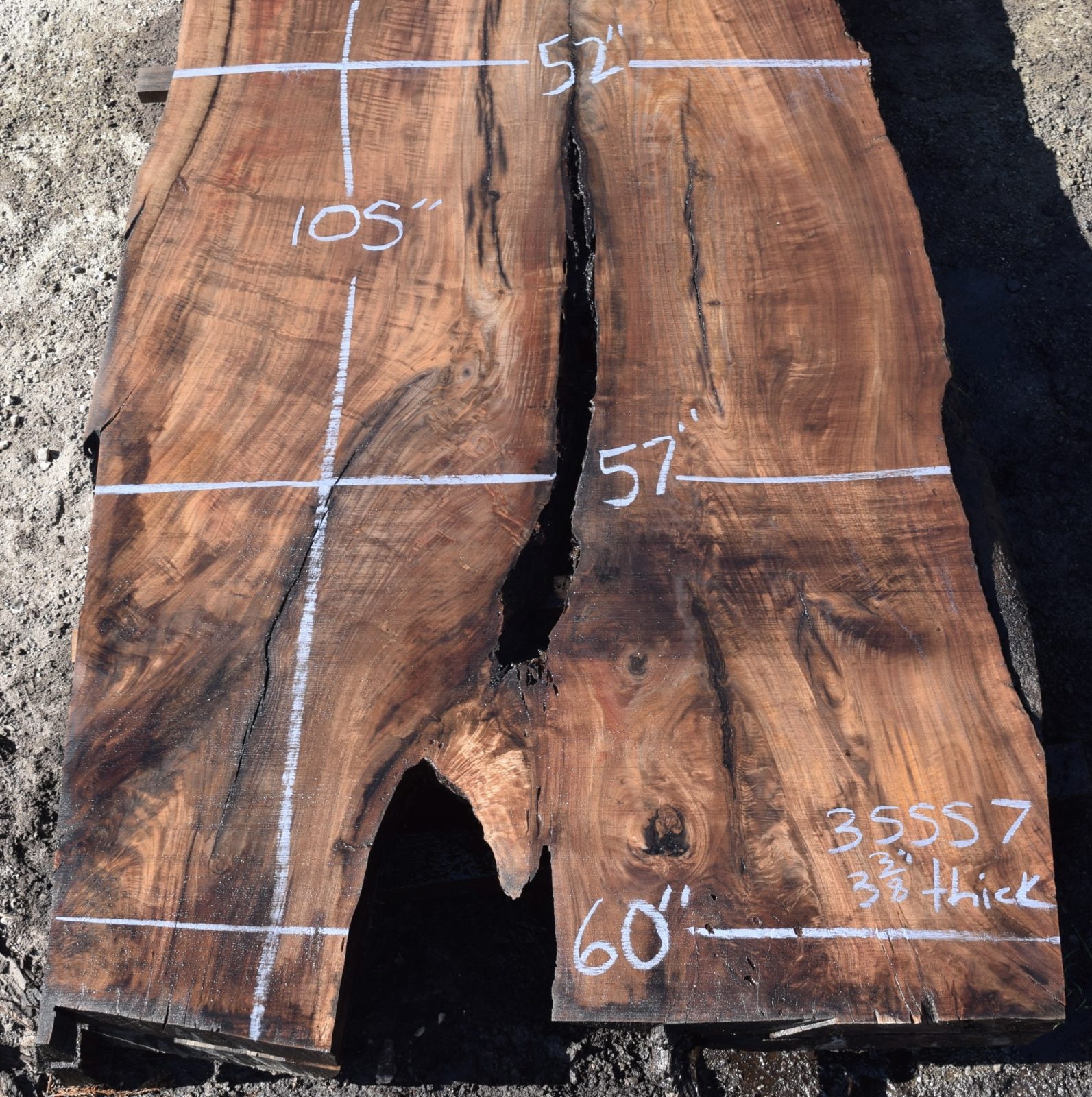 35557 Large Claro Walnut Slab 105”x60”-52”x3 3/8” Feb 2022