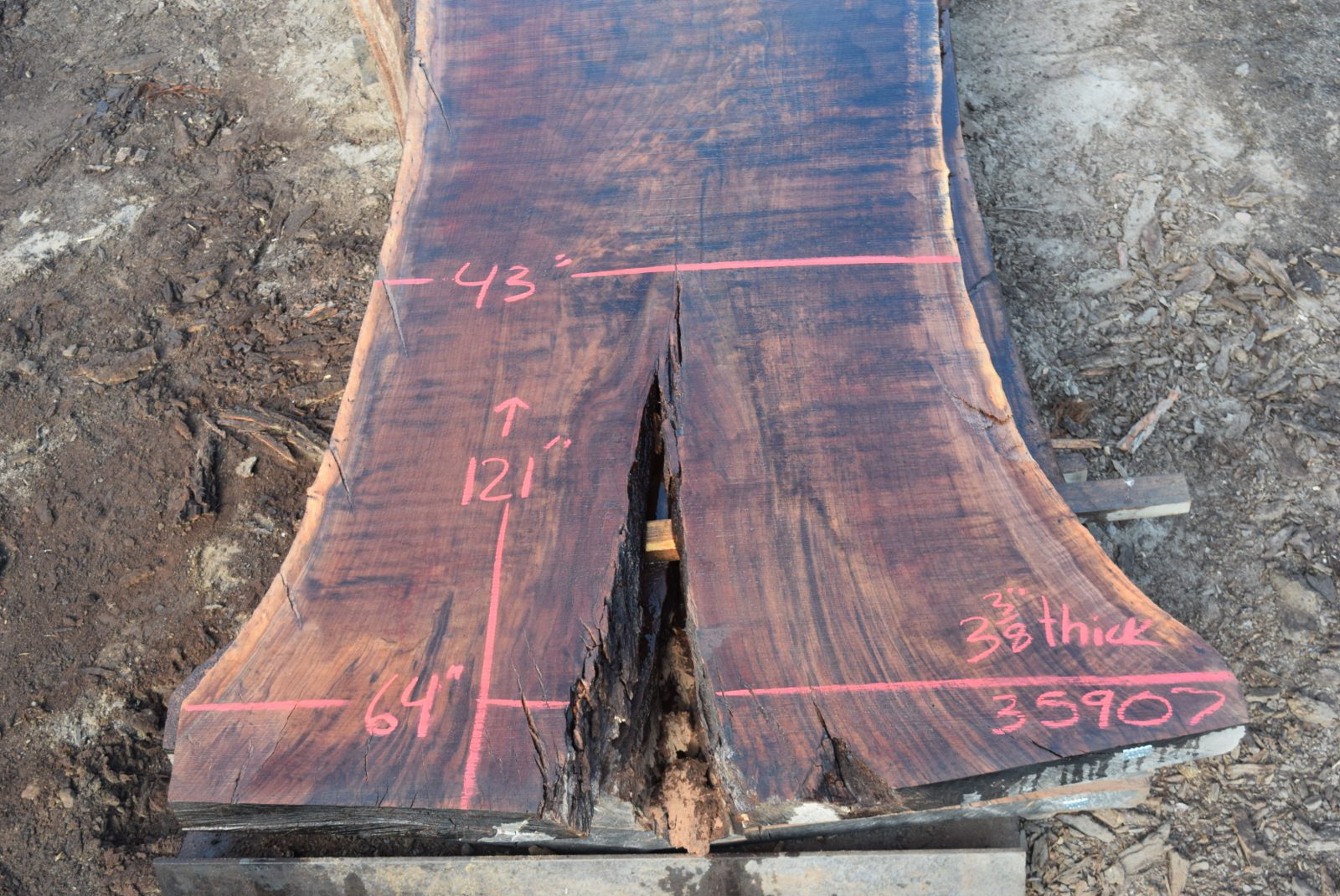 Personally salvaged from a farm in Woodland, Ca. Milled and air drying since July 2022. This was a standing dead tree as you can tell by the side checks and hole up the middle.