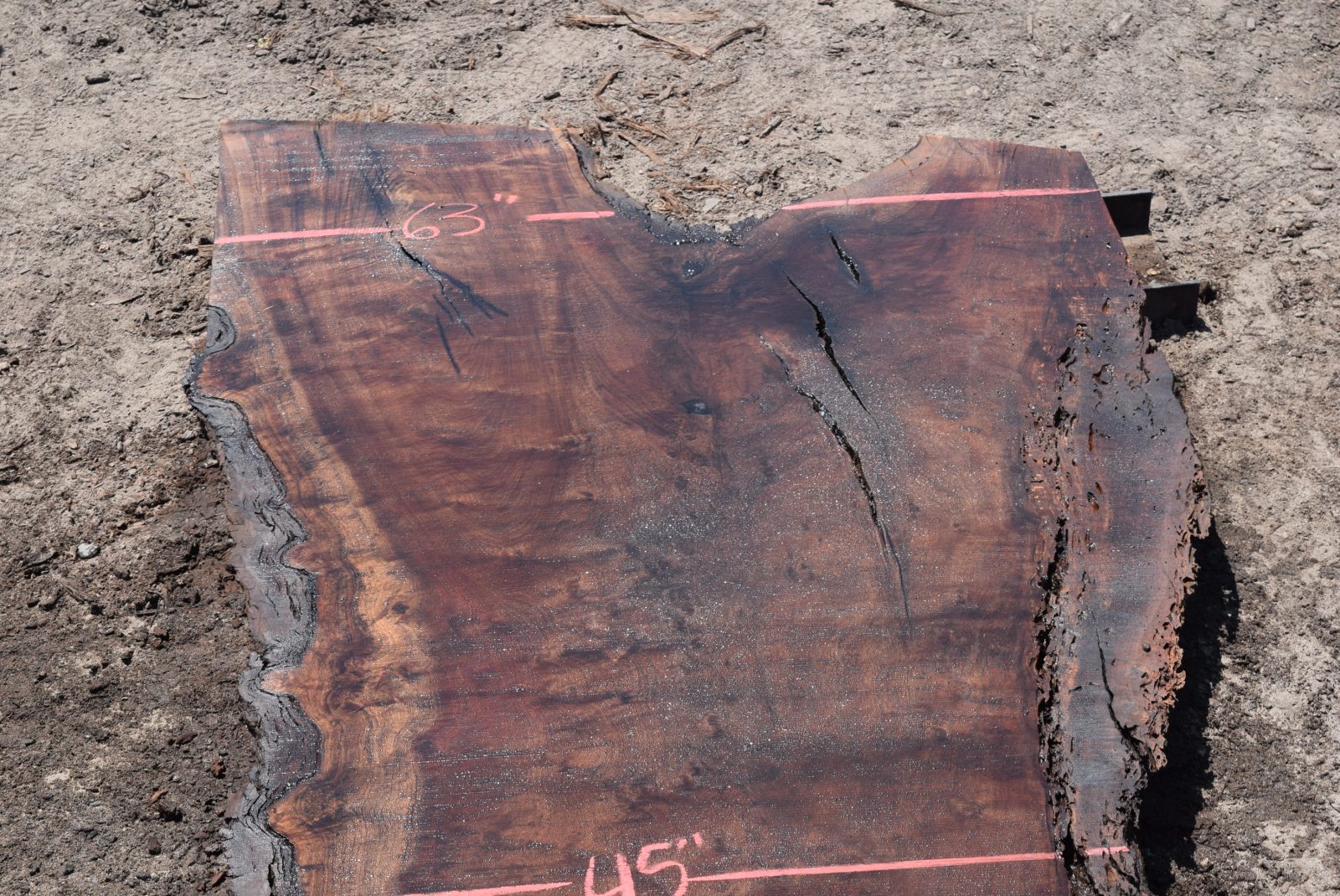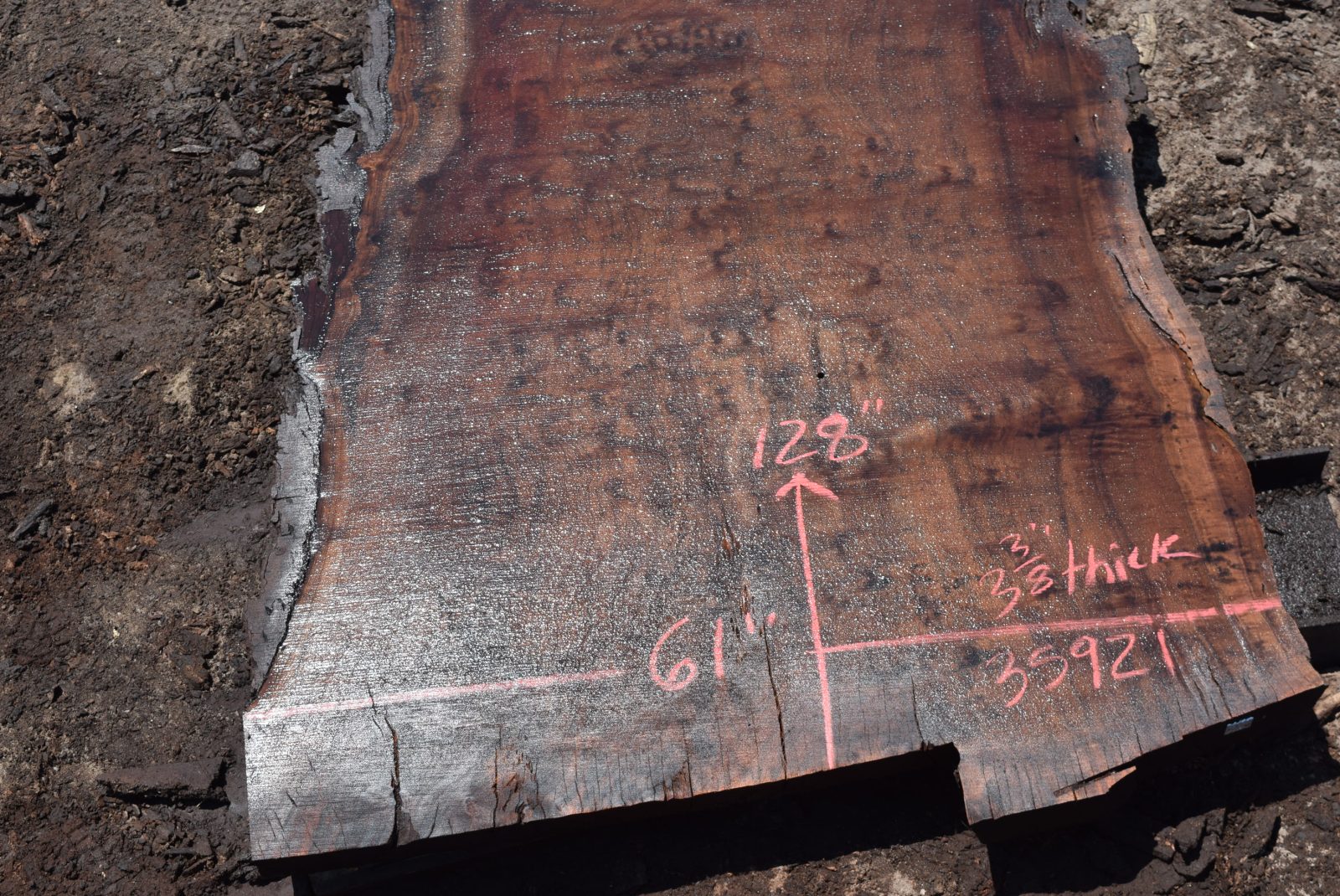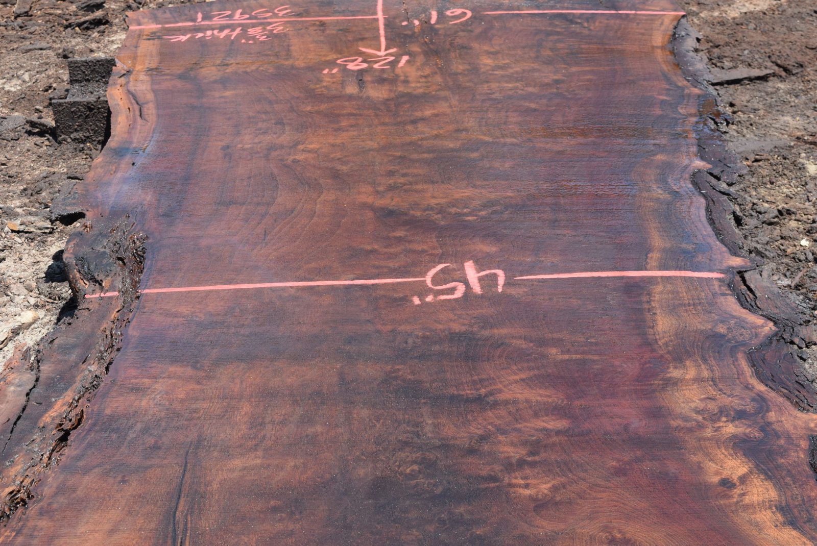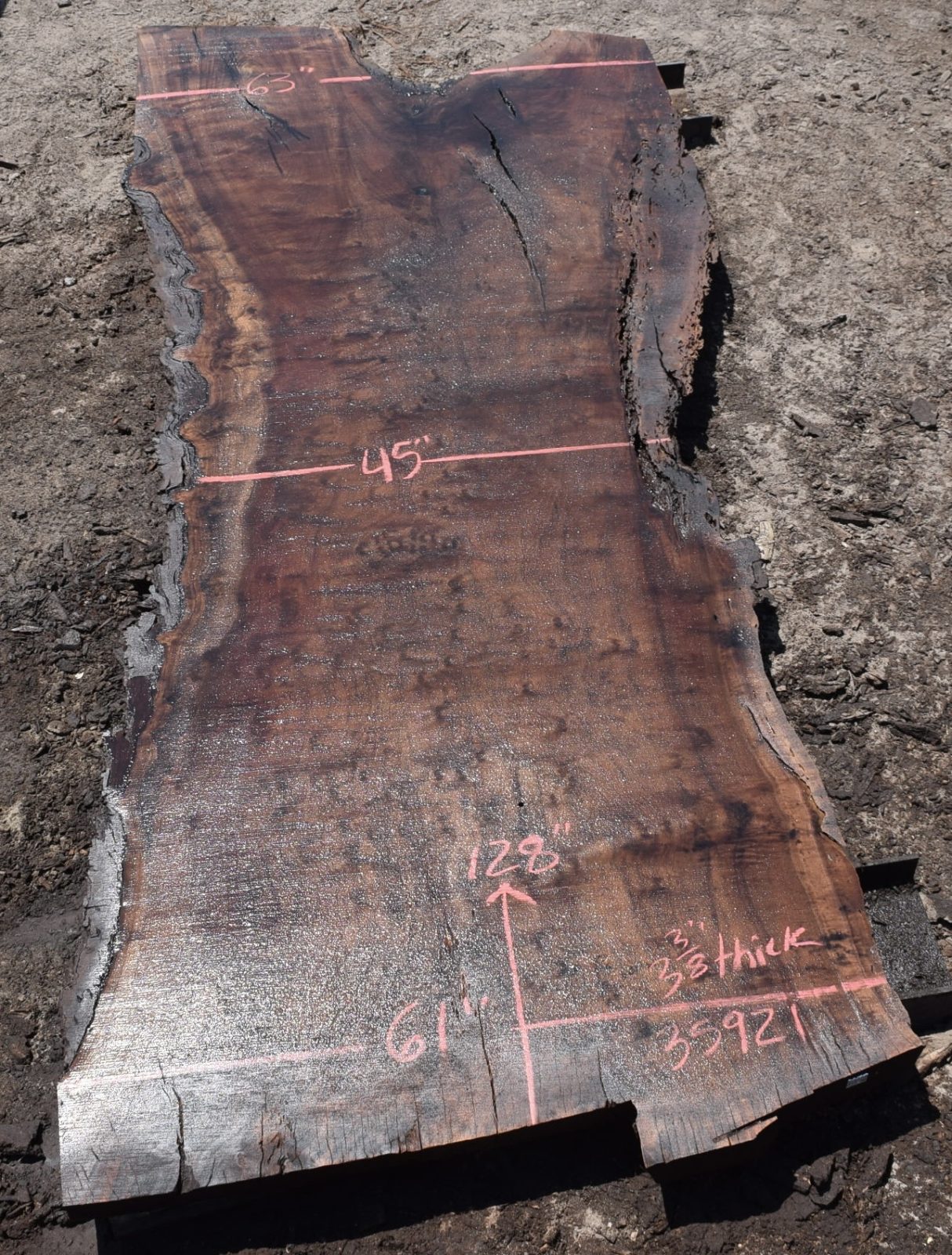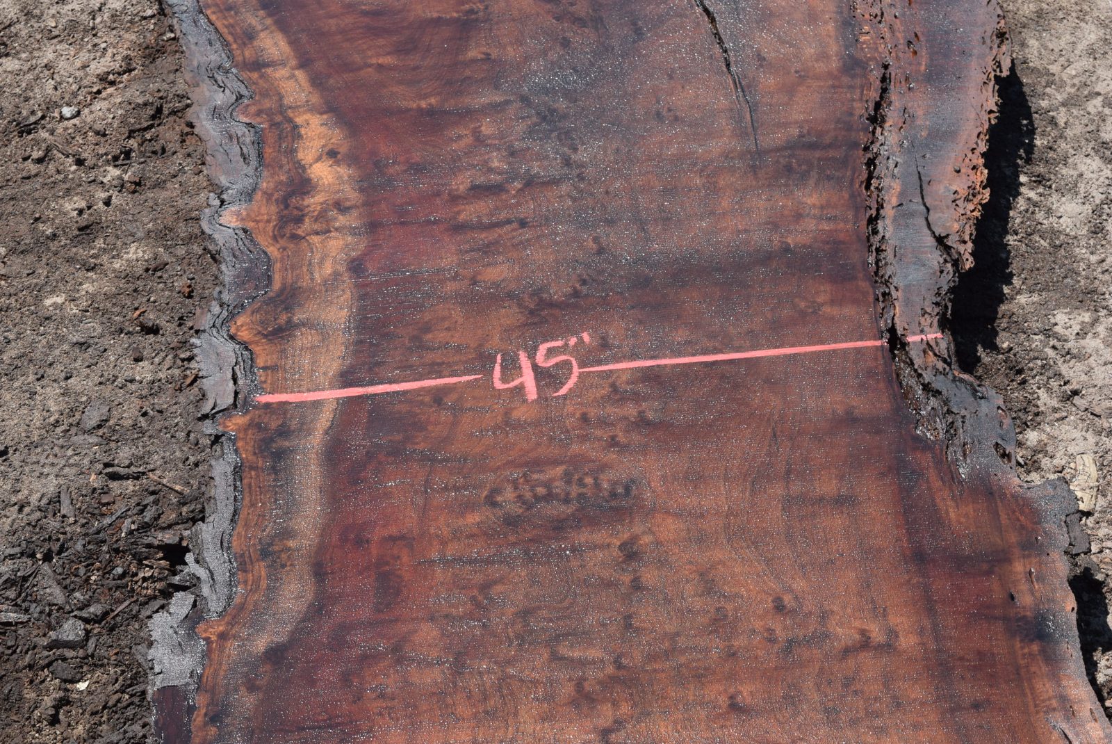 You can see us salvaging the tree that produced the slab here. Milled and air drying since July 2022.