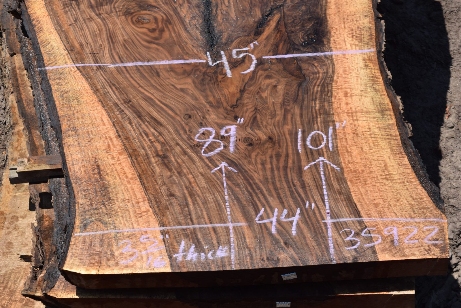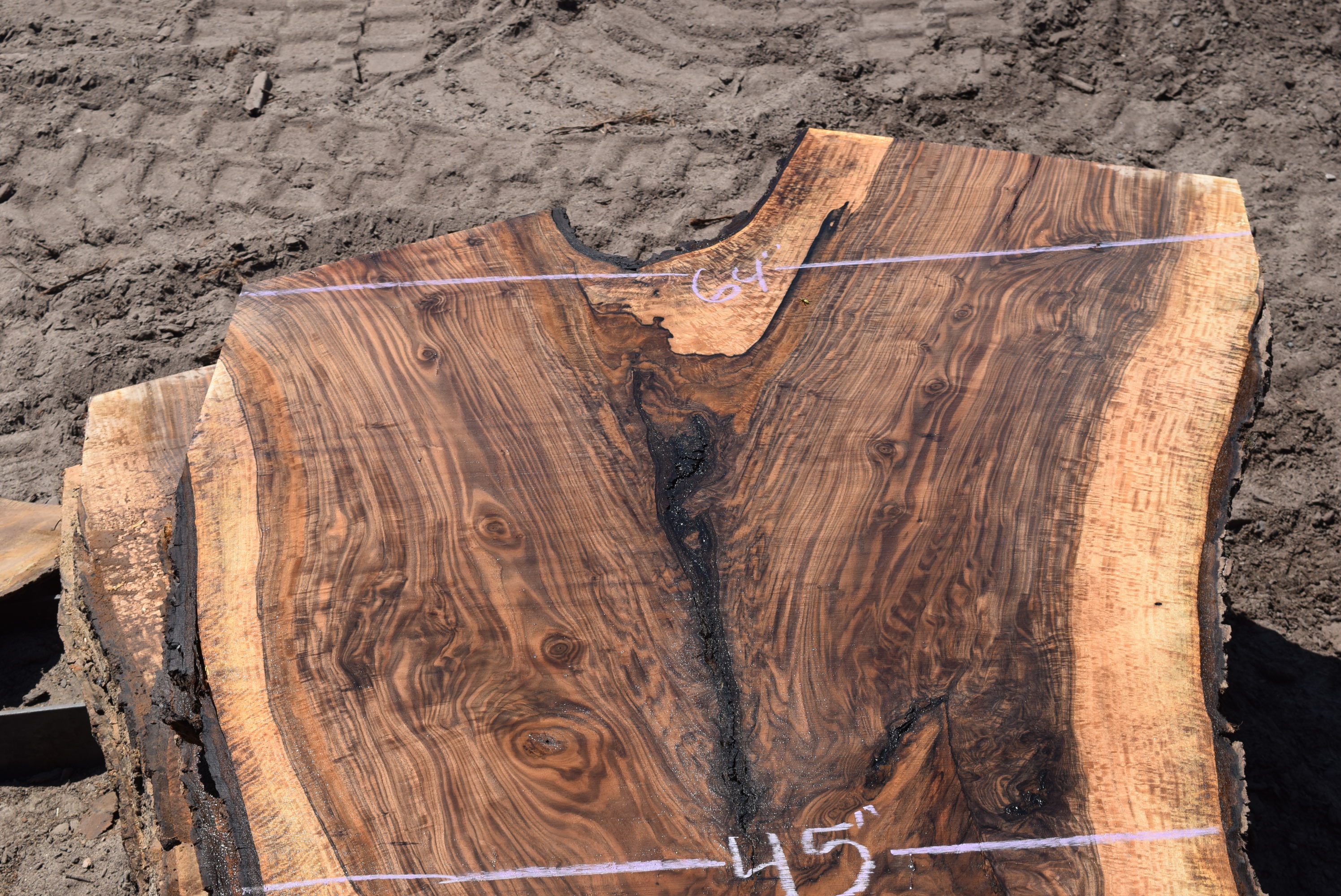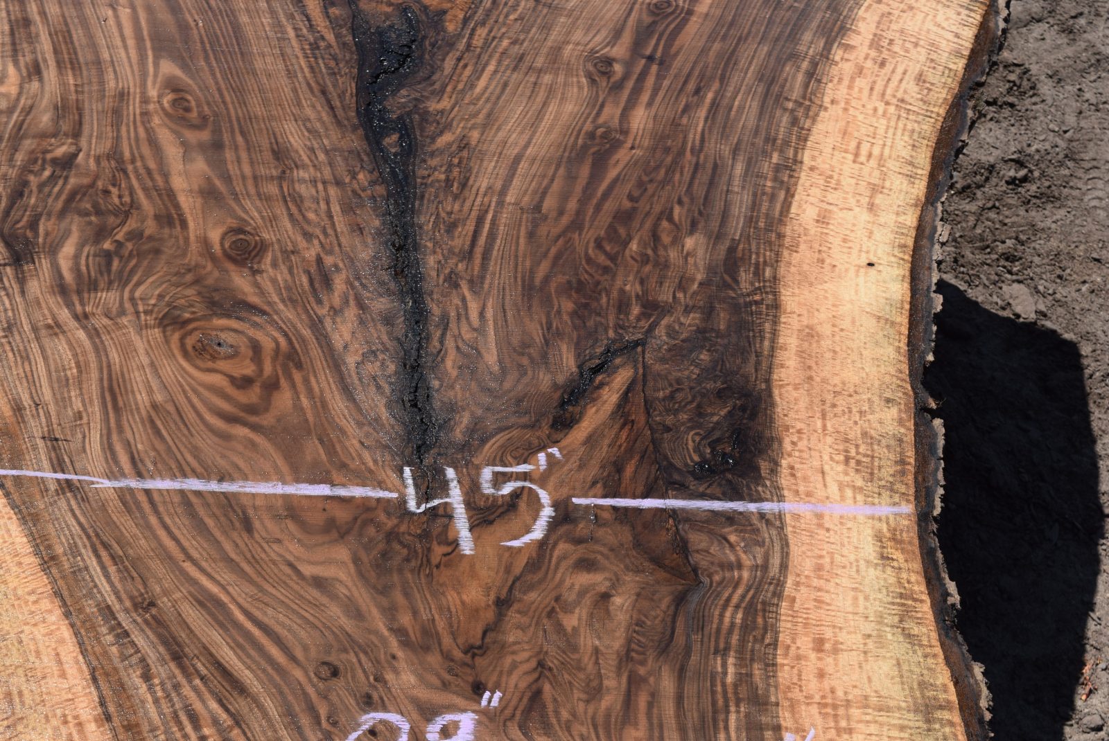 This is a beautiful Bastogne Walnut slab that has great color, grain and figure throughout along with some inclusions. The slab came from a tree that was salvaged on a property in Chico, Ca. Milled and air drying since August 2022.