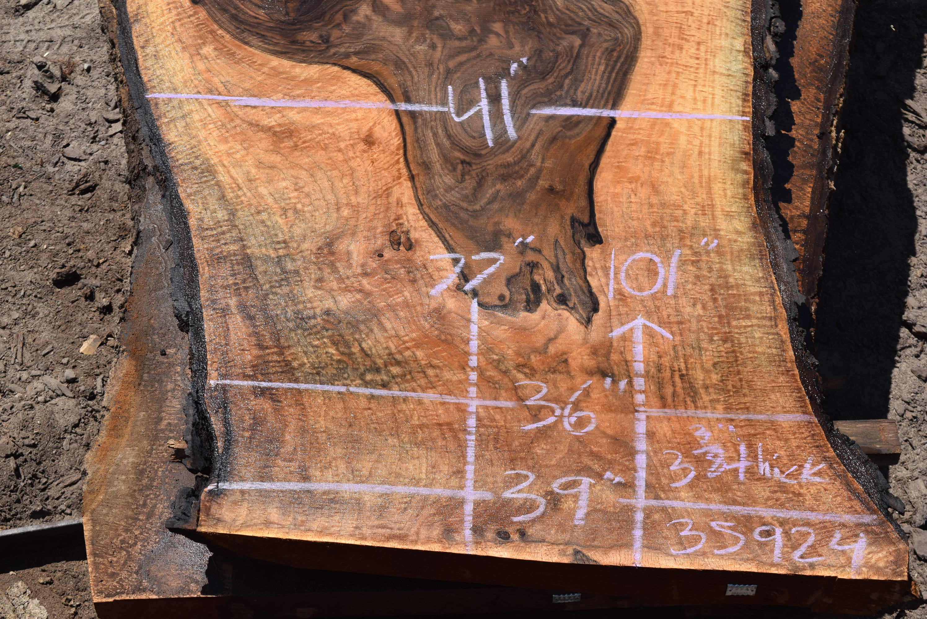 This is a beautiful Bastogne Walnut slab that has great color, grain and figure throughout. The slab came from a tree that was salvaged on a property in Chico, Ca. Milled and air drying since August 2022.