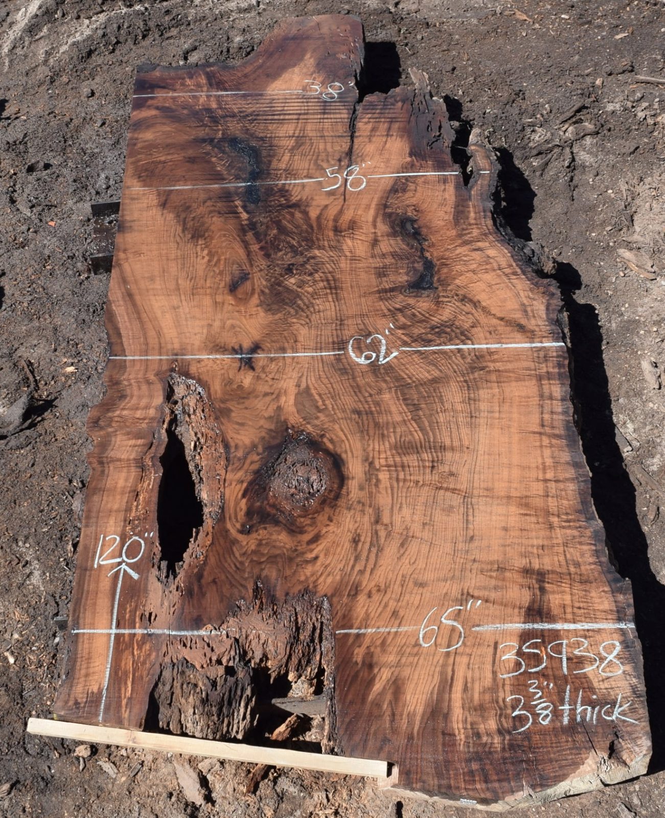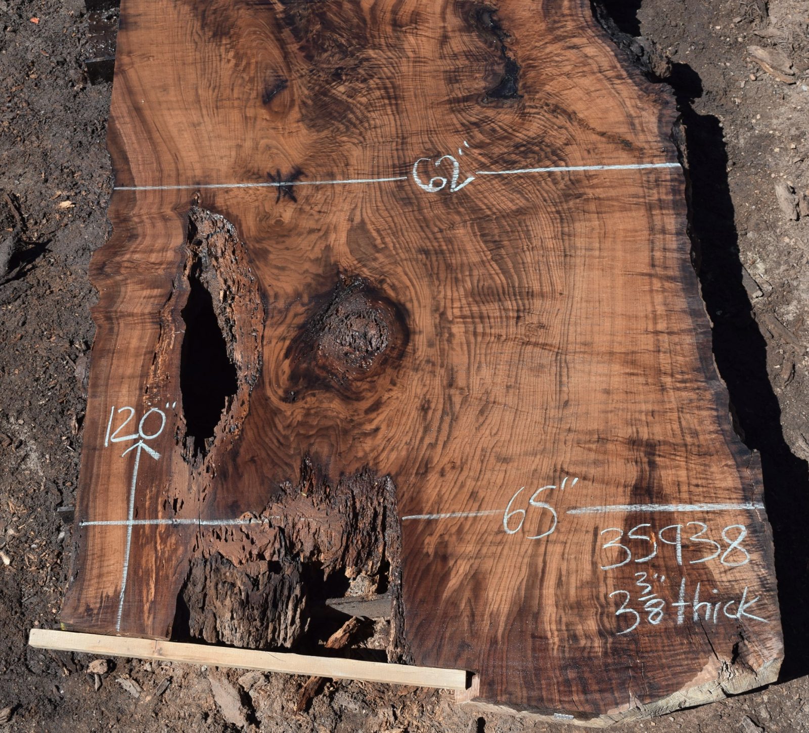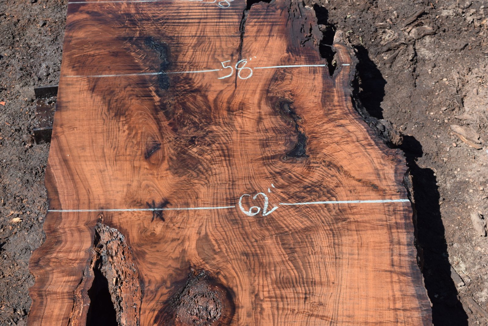 You can see us salvaging the tree that produced the slab here. Milled and air drying since July 2022.