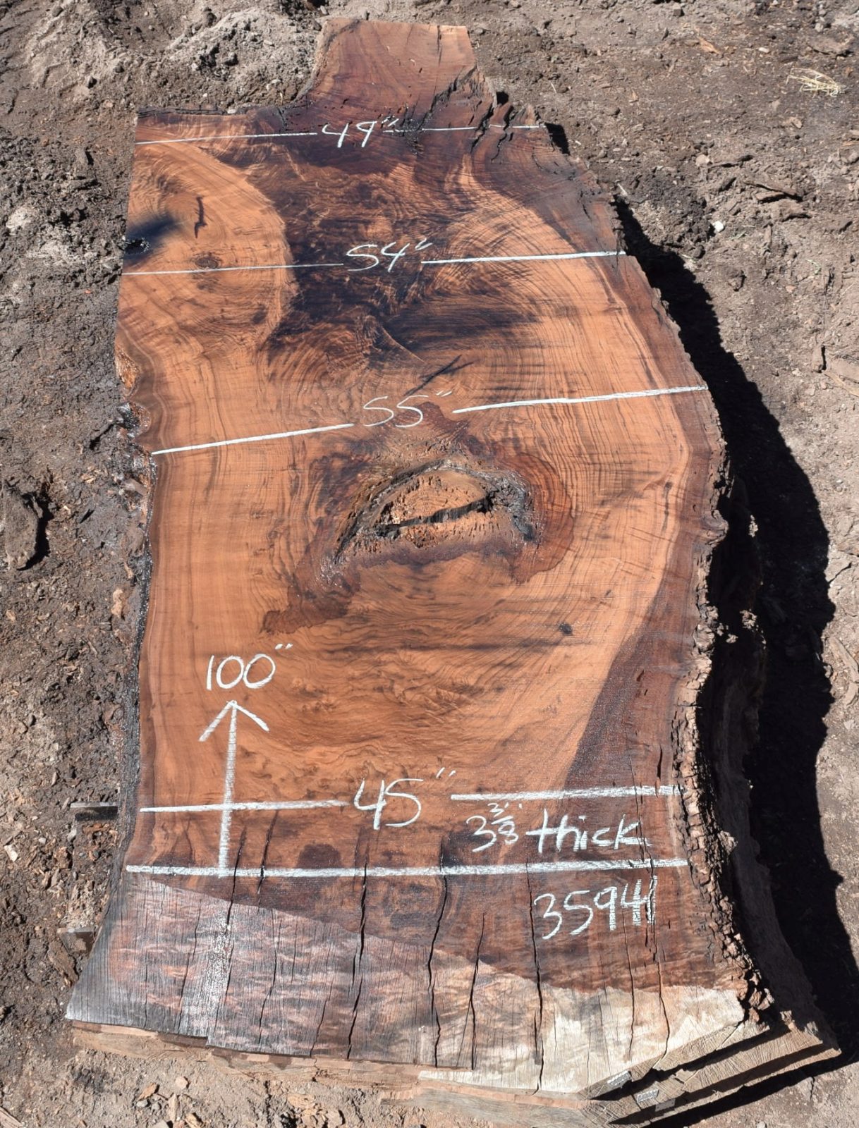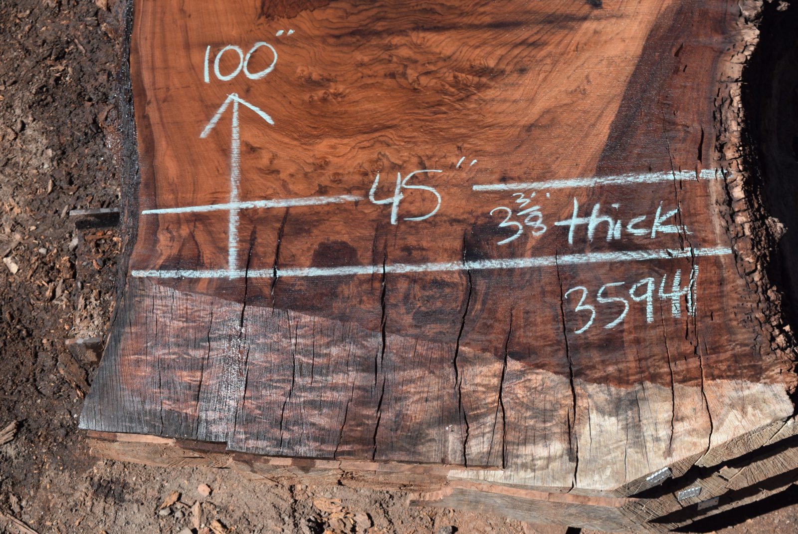 You can see us salvaging the tree that produced the slab here. Milled and air drying since July 2022.