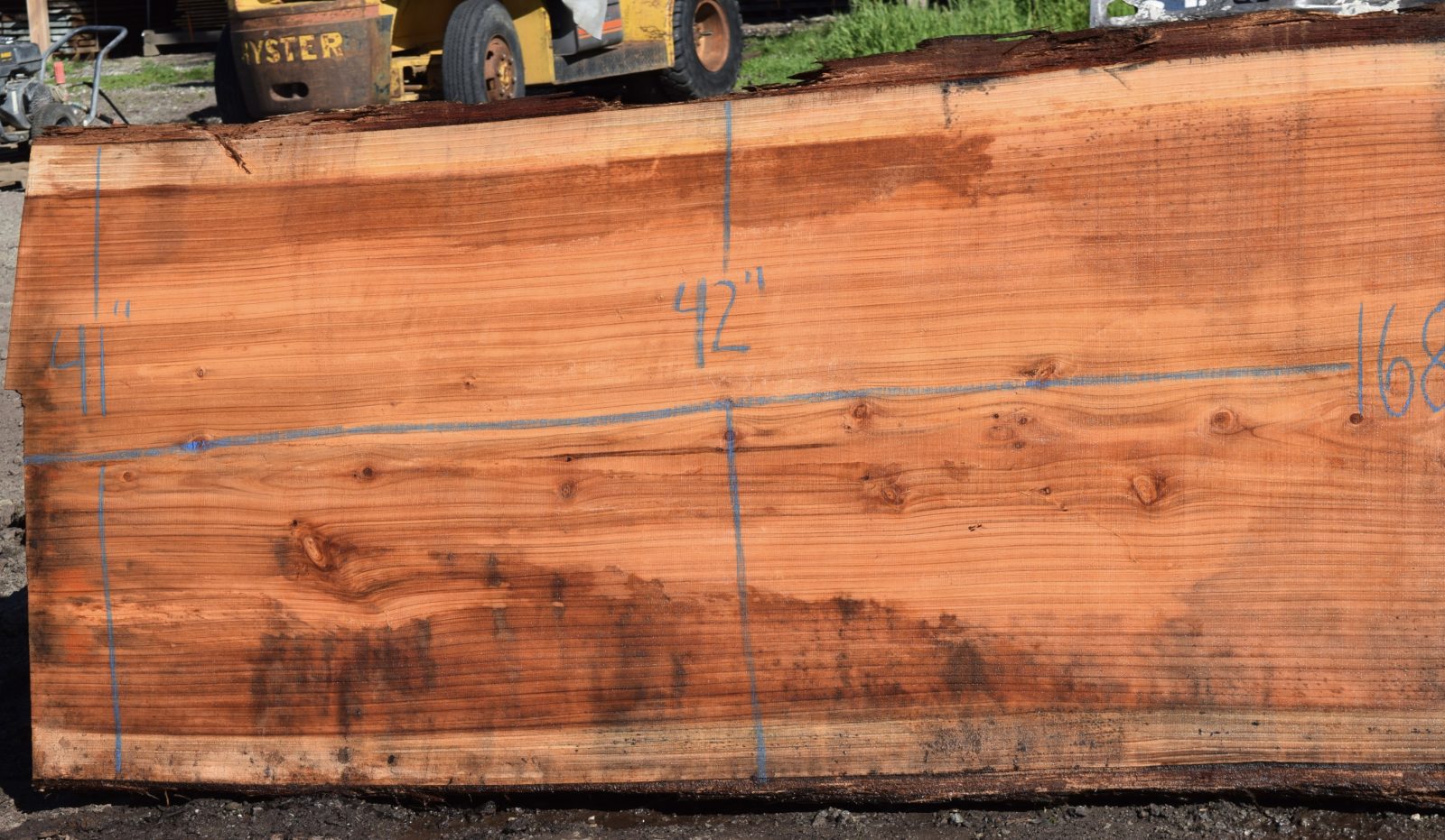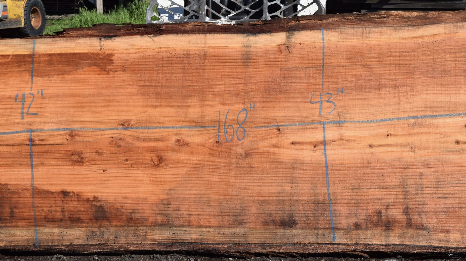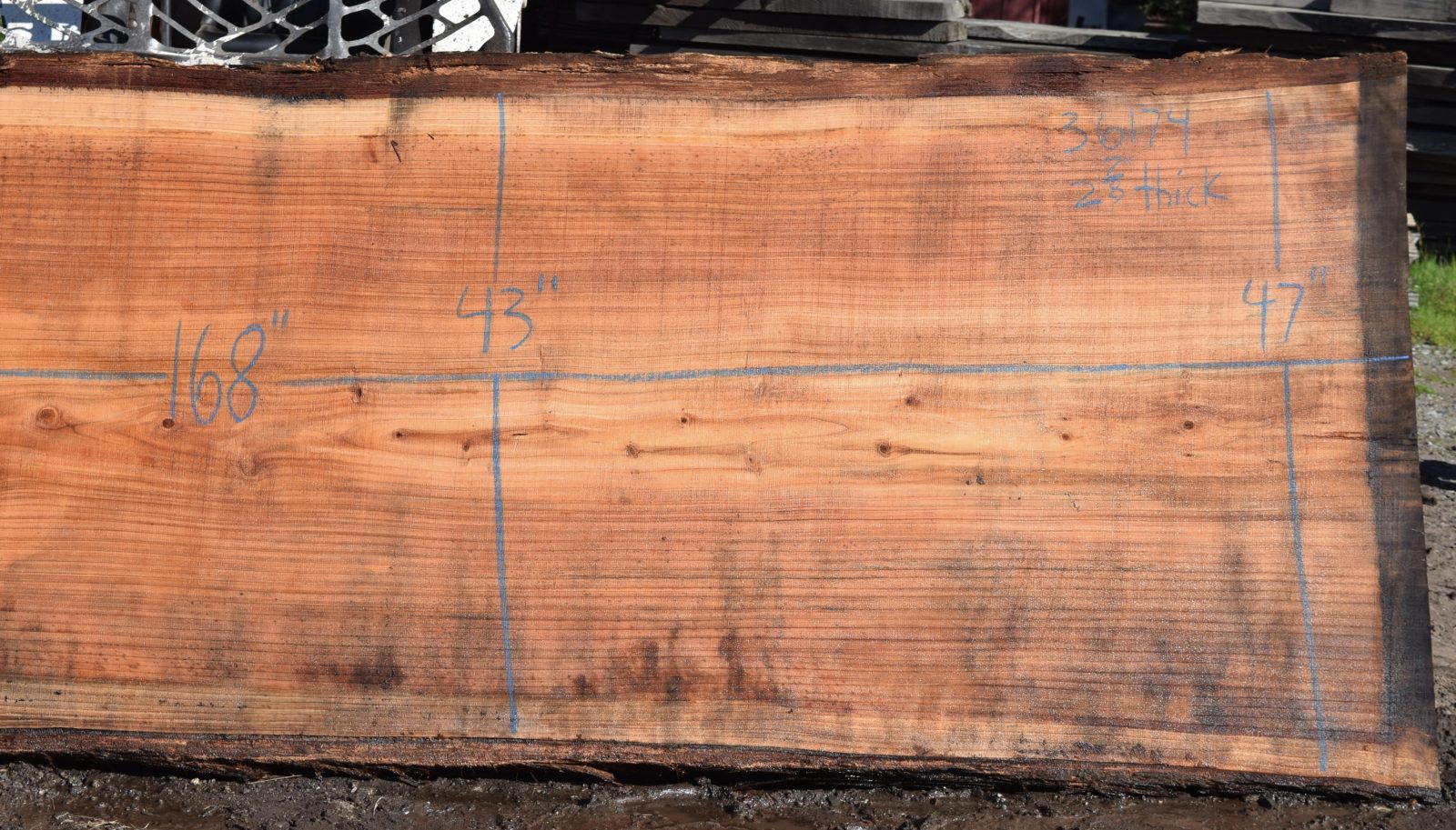 Nice grain and color. The areas that look like stains will come out once surfaced. Air drying since February 2025 and will take 2 weeks in the kiln.
