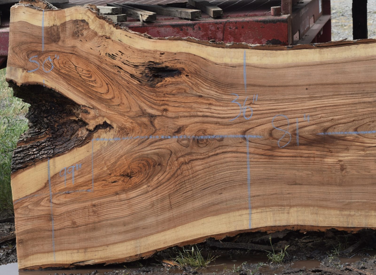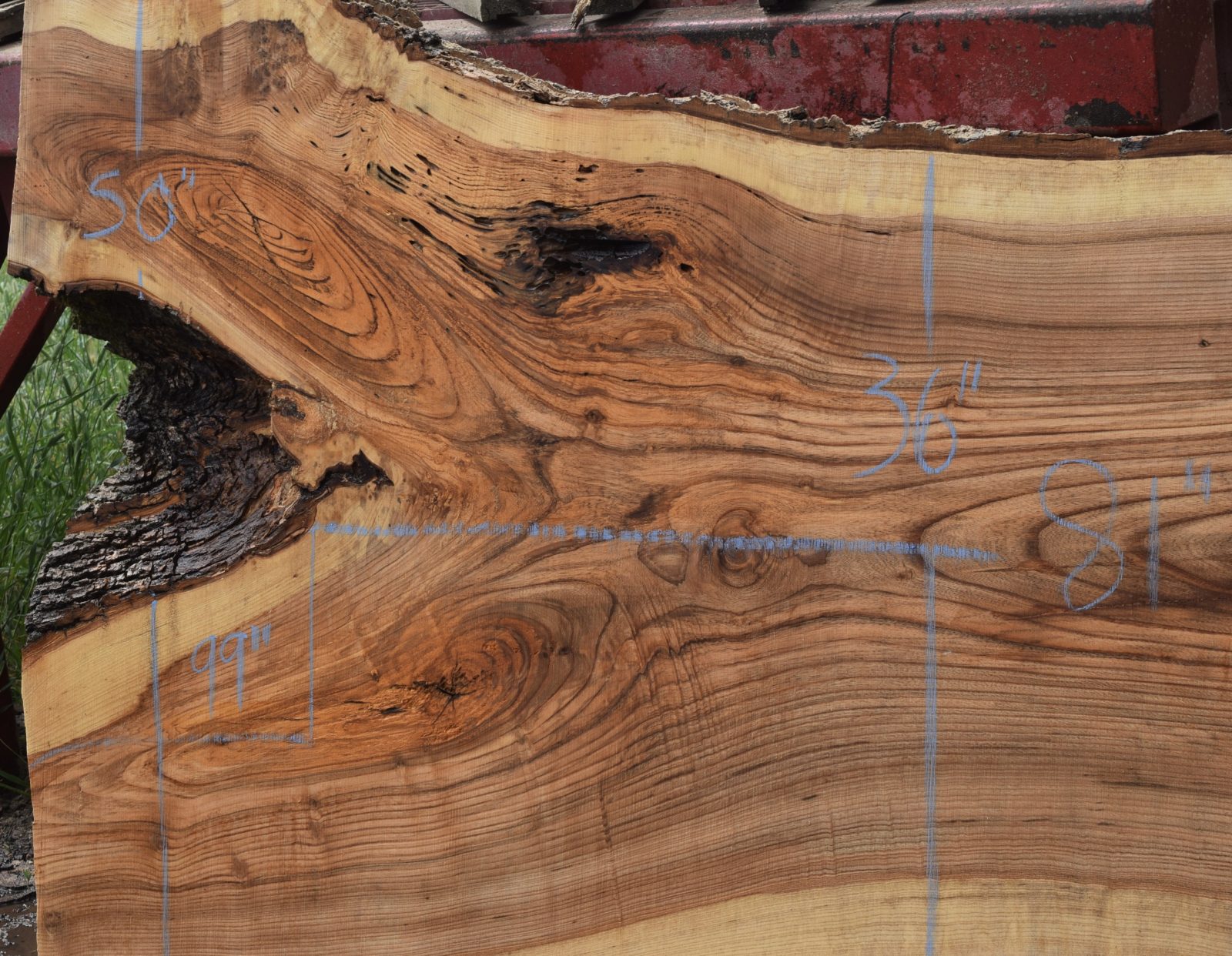 Salvaged from a local Sacramento home. Nice color and grain along with some cracks and inclusions. Milled and air drying since April 2025.