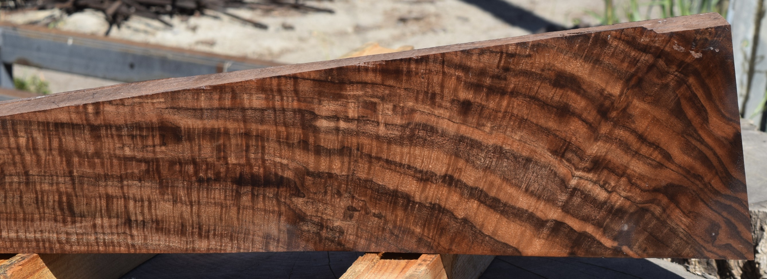 Dry and ready to work. Nice color, grain and figure along with a couple burl rays that can be filled and shouldn’t be in the layout.