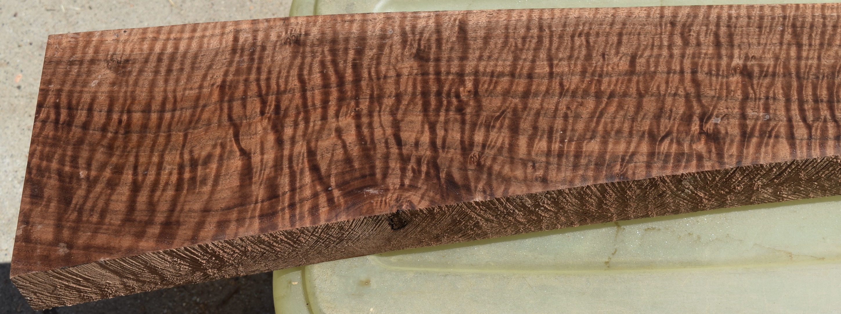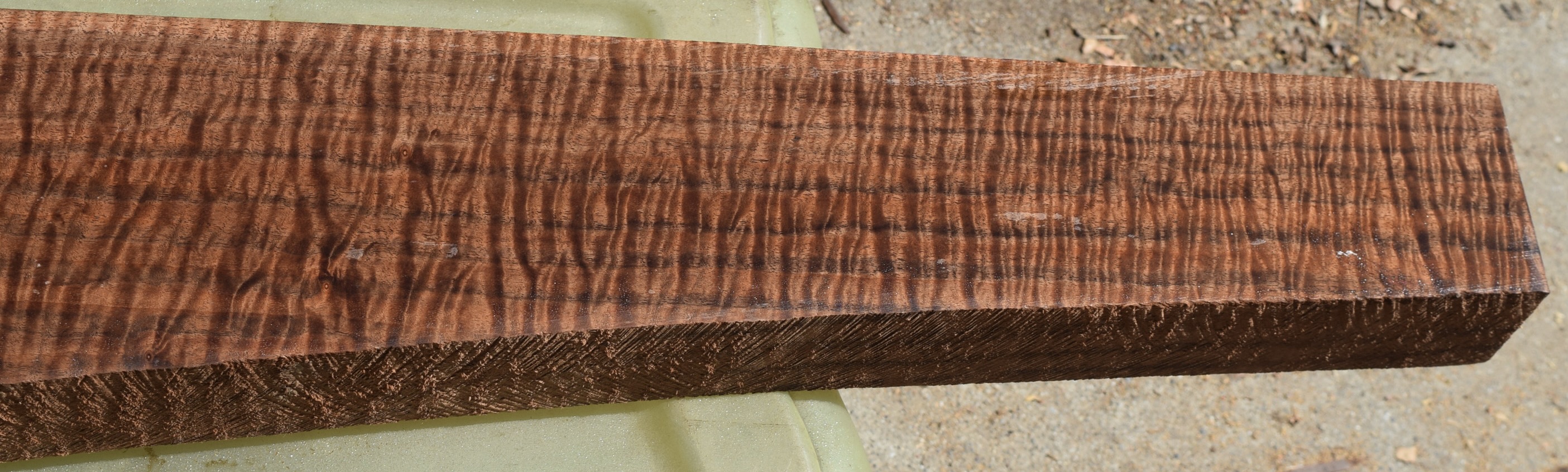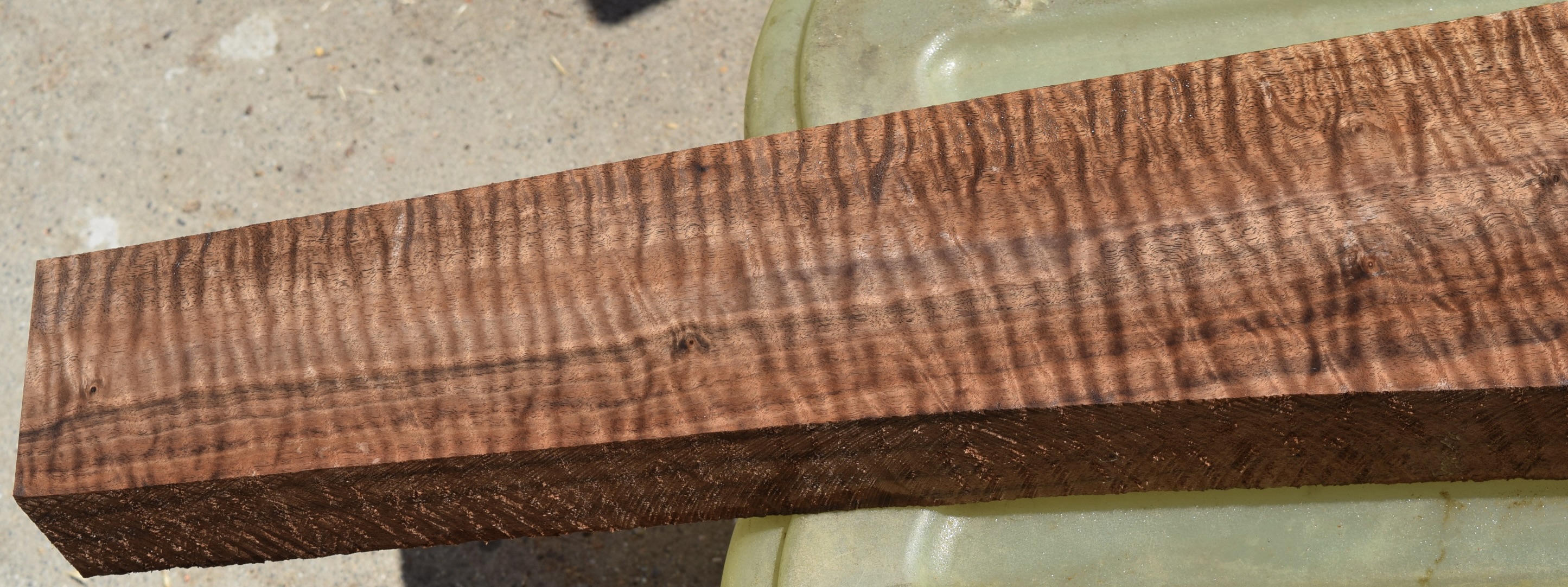 Dry and ready to use. Incredible color, grain and figure. There is one small inclusion on the bottom edge but should not cause any problems.