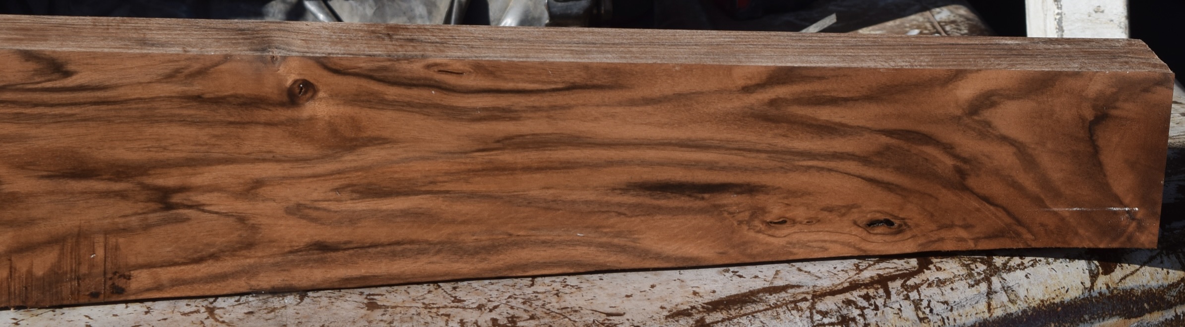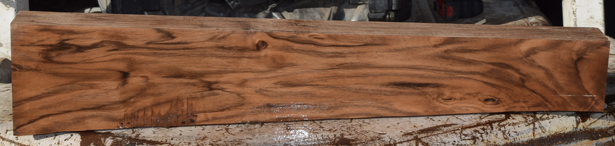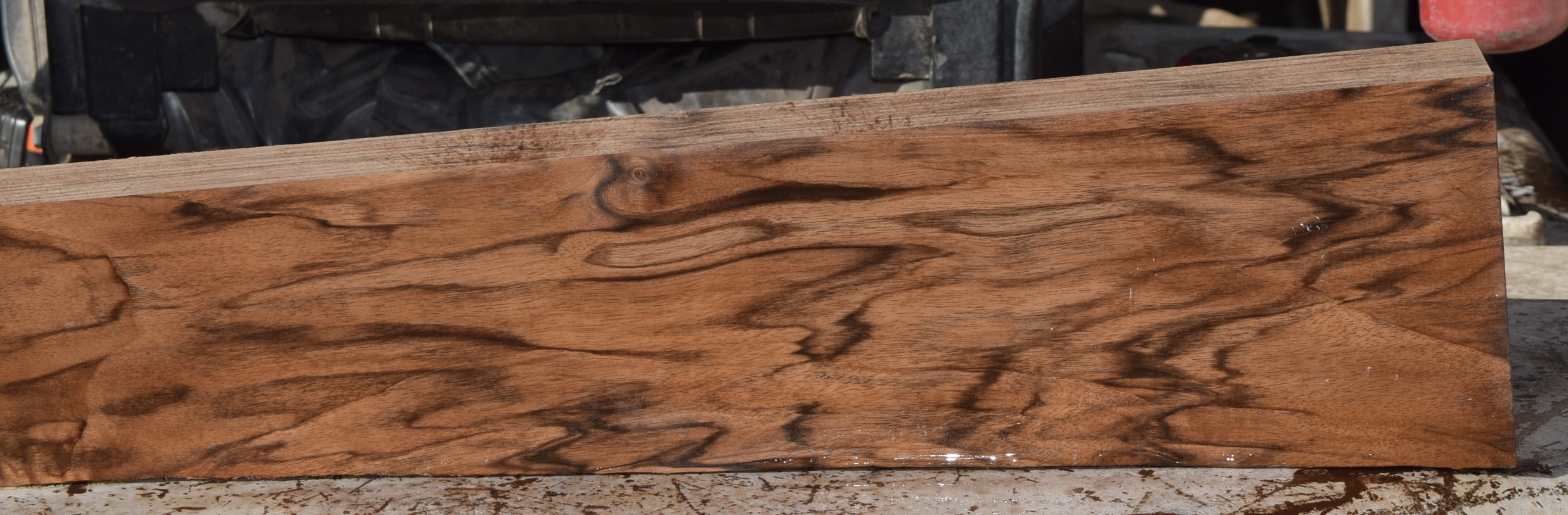 Dry and ready to use. Beautiful color, marbling and grain. There are a few small bark pockets that shouldn’t come into play.