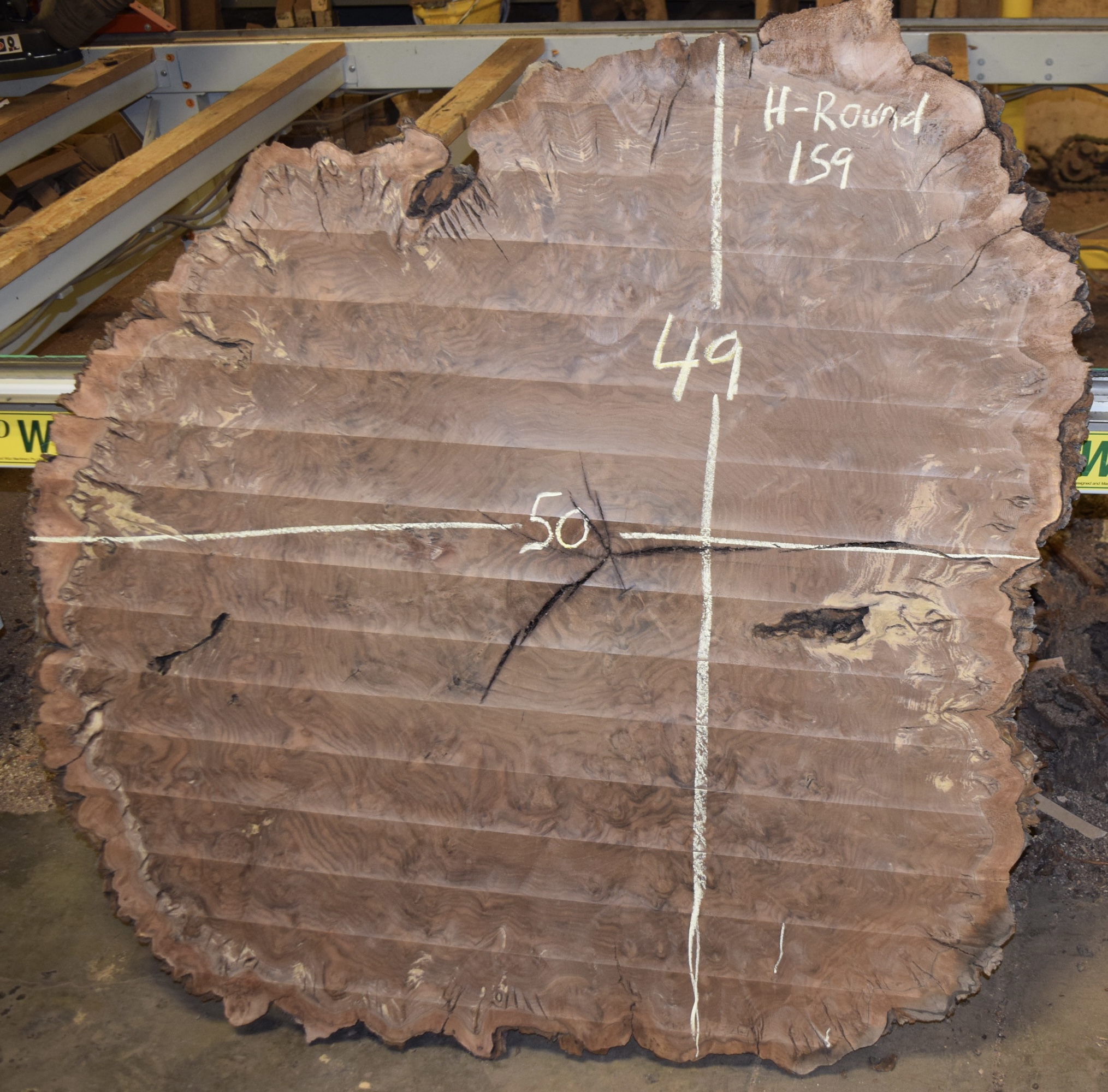HROUND-159 Claro Walnut Burl Round 50”x49”x2 5/8” quantity