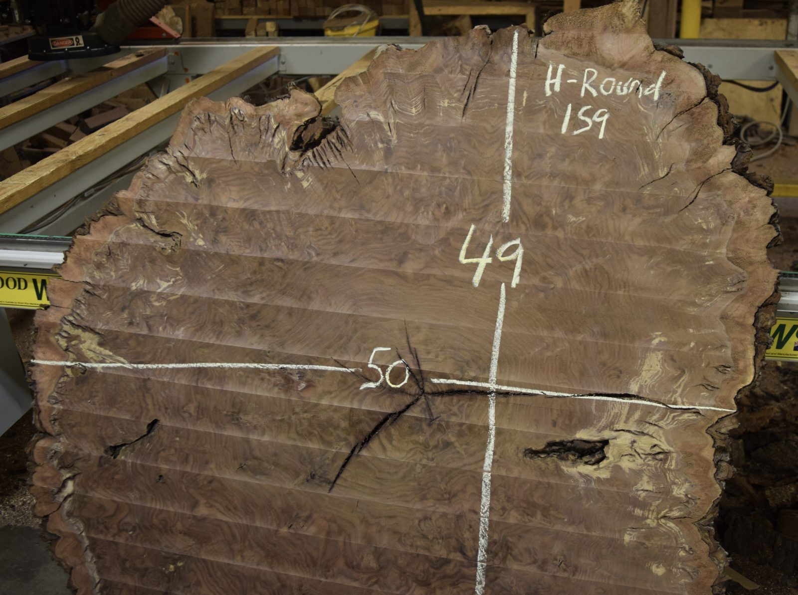 HROUND-162 Claro Walnut Burl Cookie Slab 60”x55”x2 3/8”