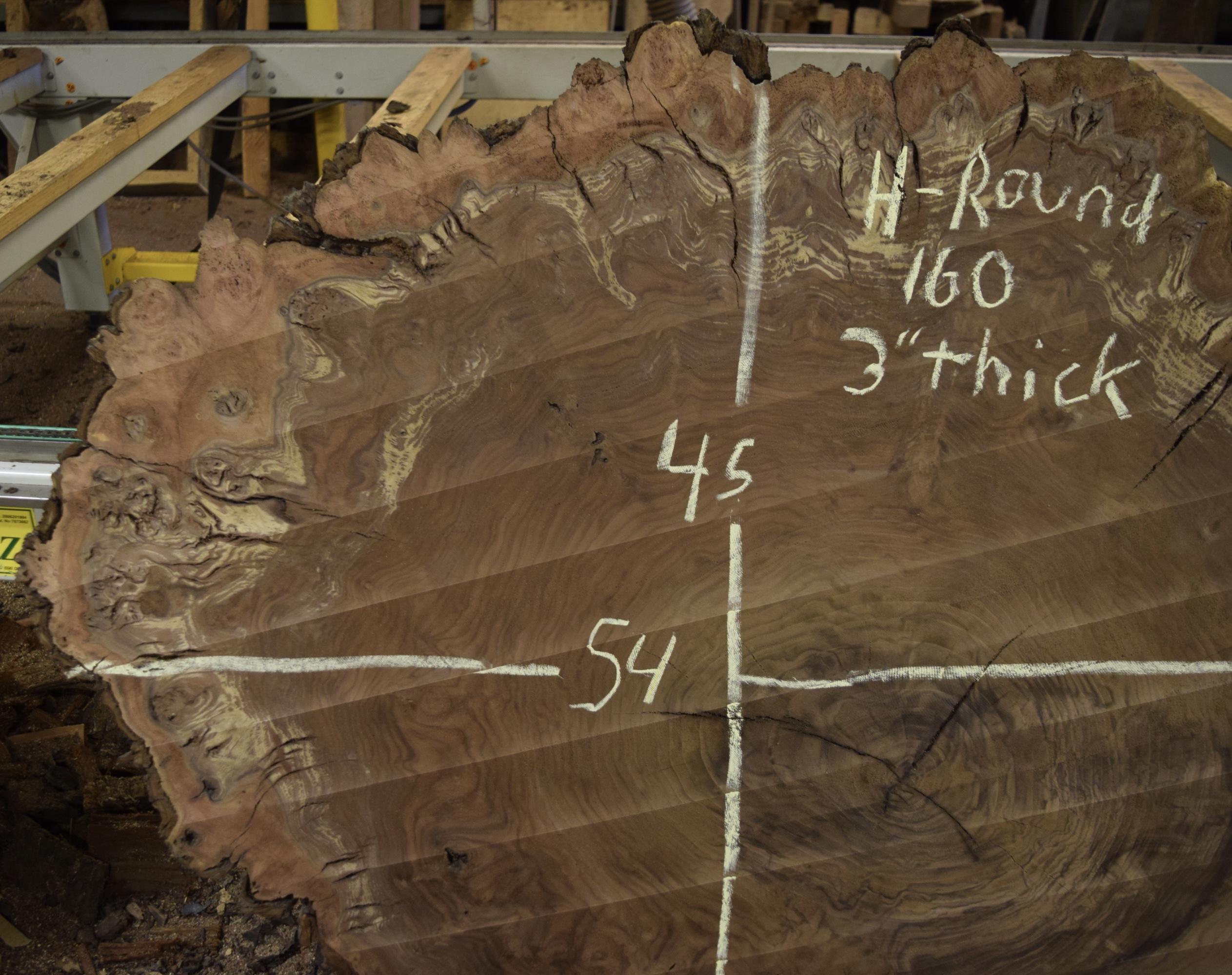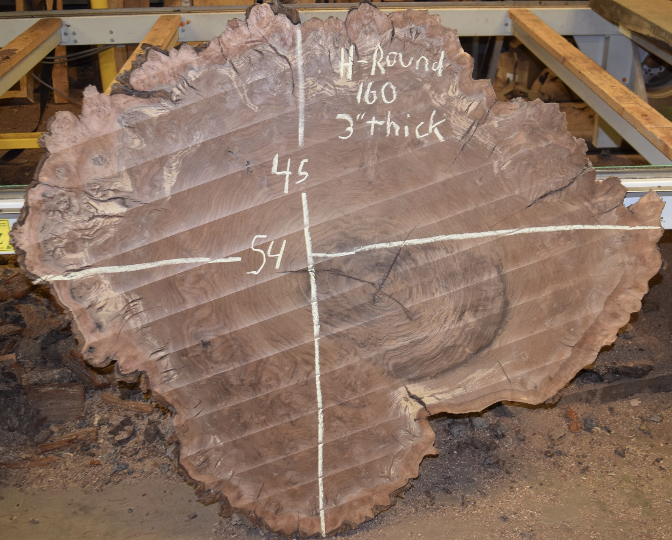 HROUND-162 Claro Walnut Burl Cookie Slab 60”x55”x2 3/8”