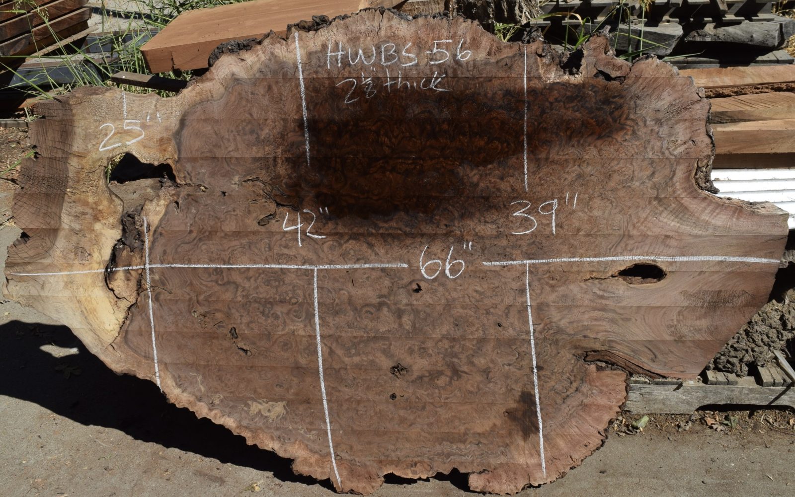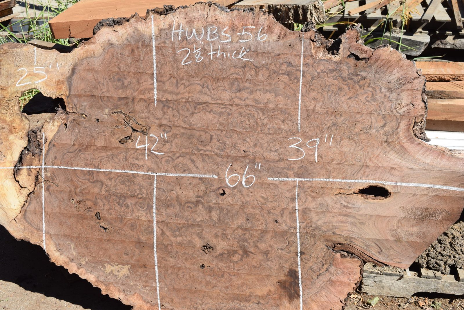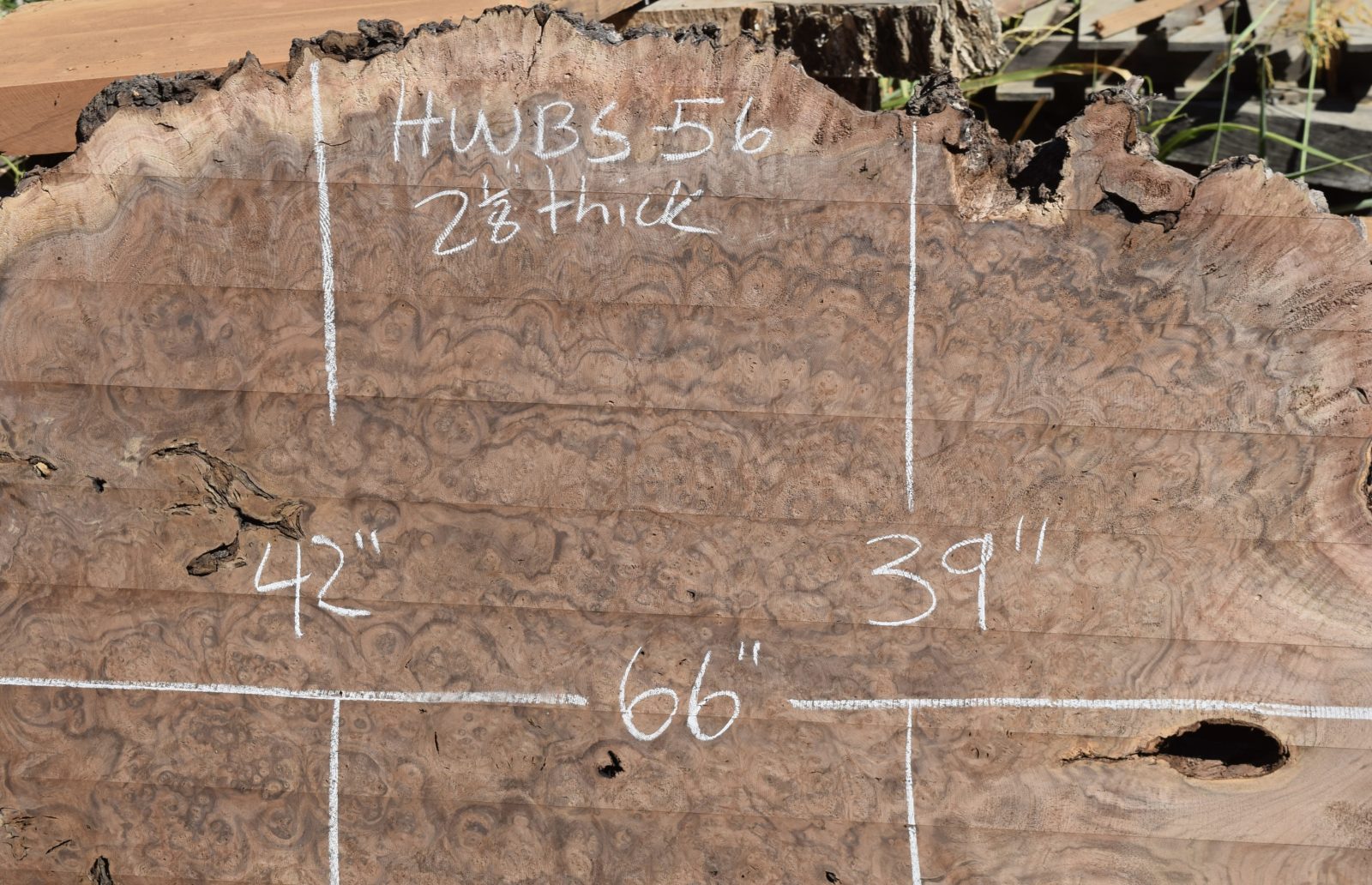 Kiln dried and surfaced. Incredible burl, color and grain. This is a one of a kind burl slab with amazing burl eyes throughout. The slab came from a burl that we personally salvaged from the Lang home ranch in West Sacramento.