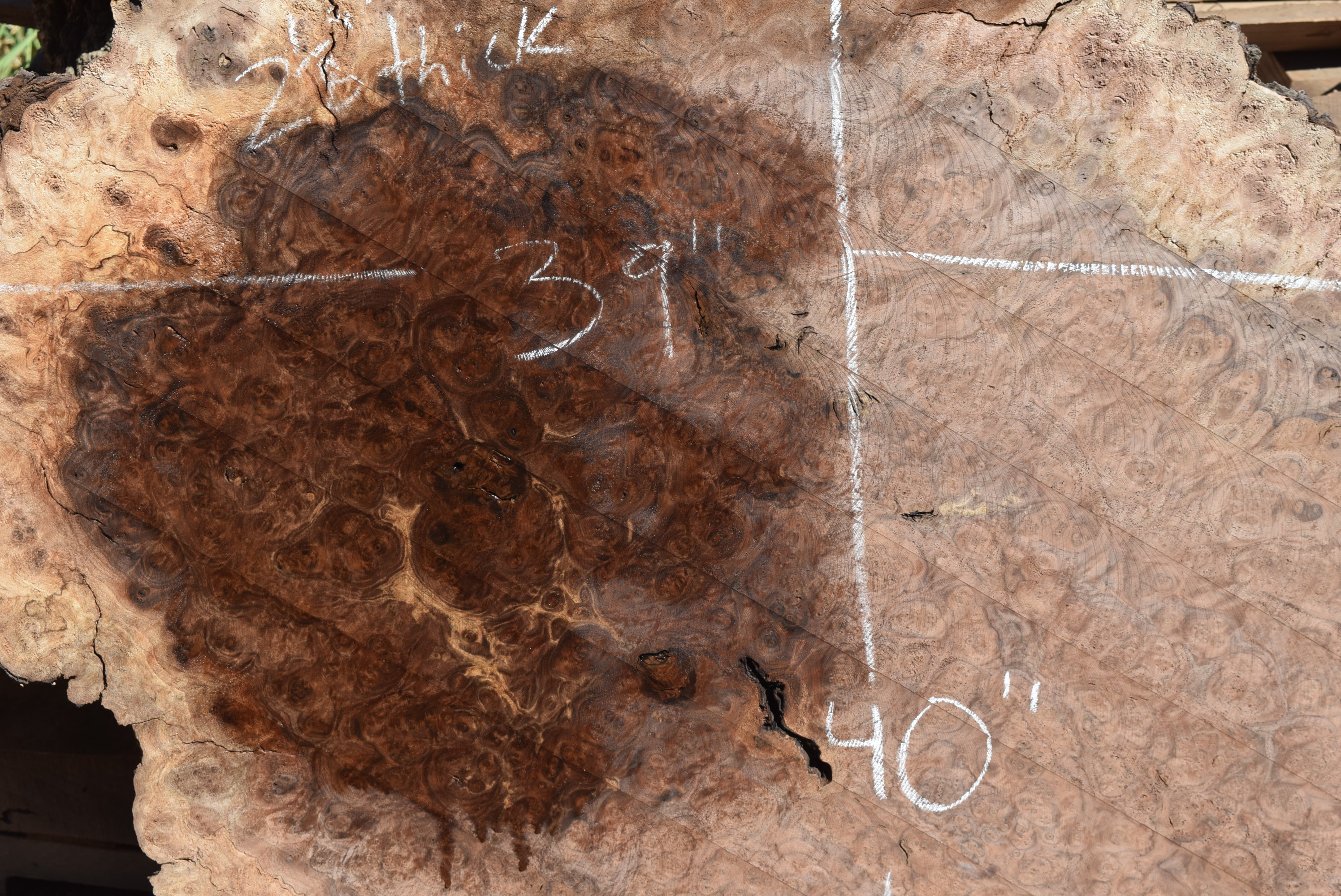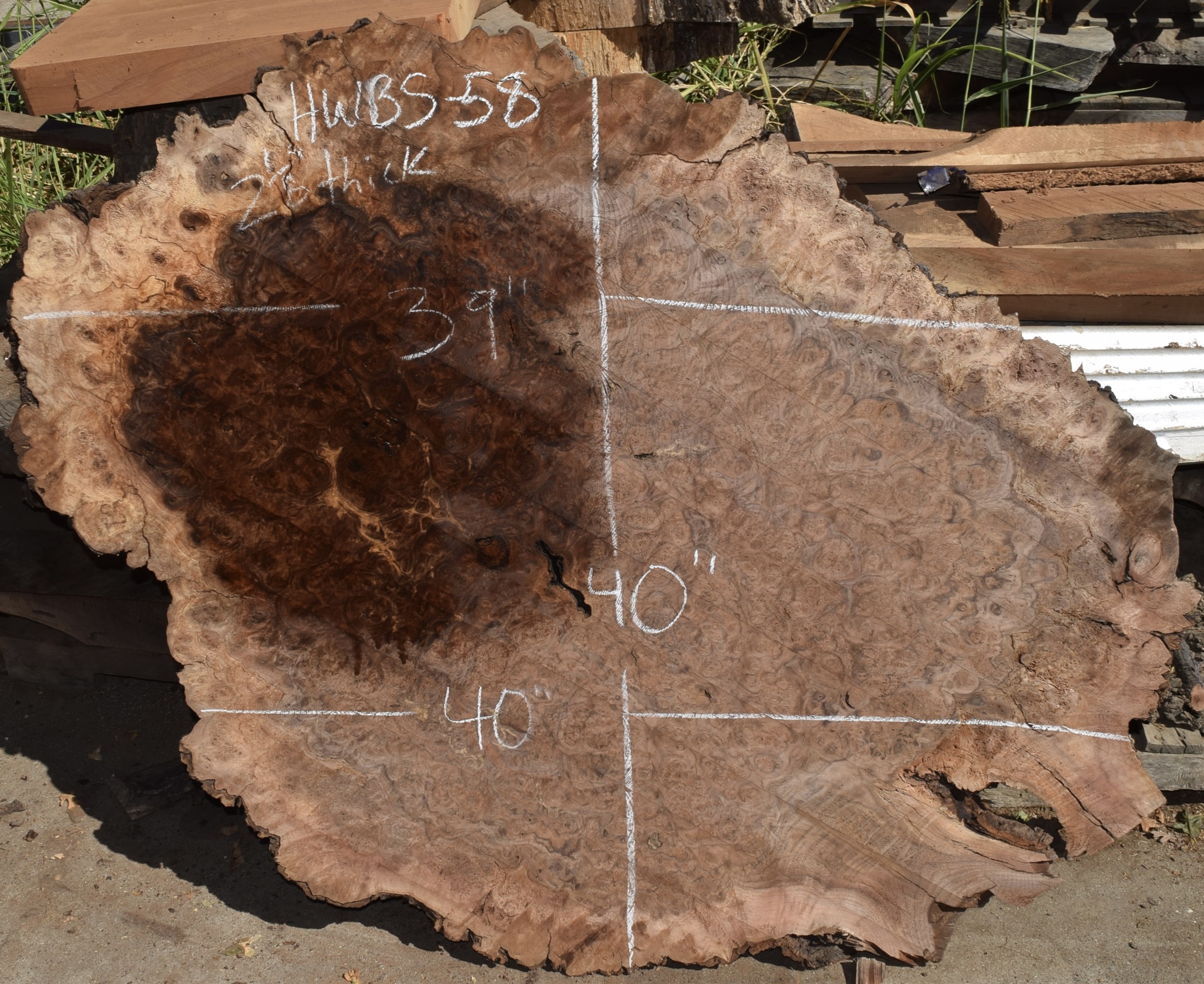 Kiln dried and surfaced. Incredible burl, color and grain. This is a one of a kind burl slab with amazing burl eyes throughout. The slab came from a burl that we personally salvaged from the Lang home ranch in West Sacramento.